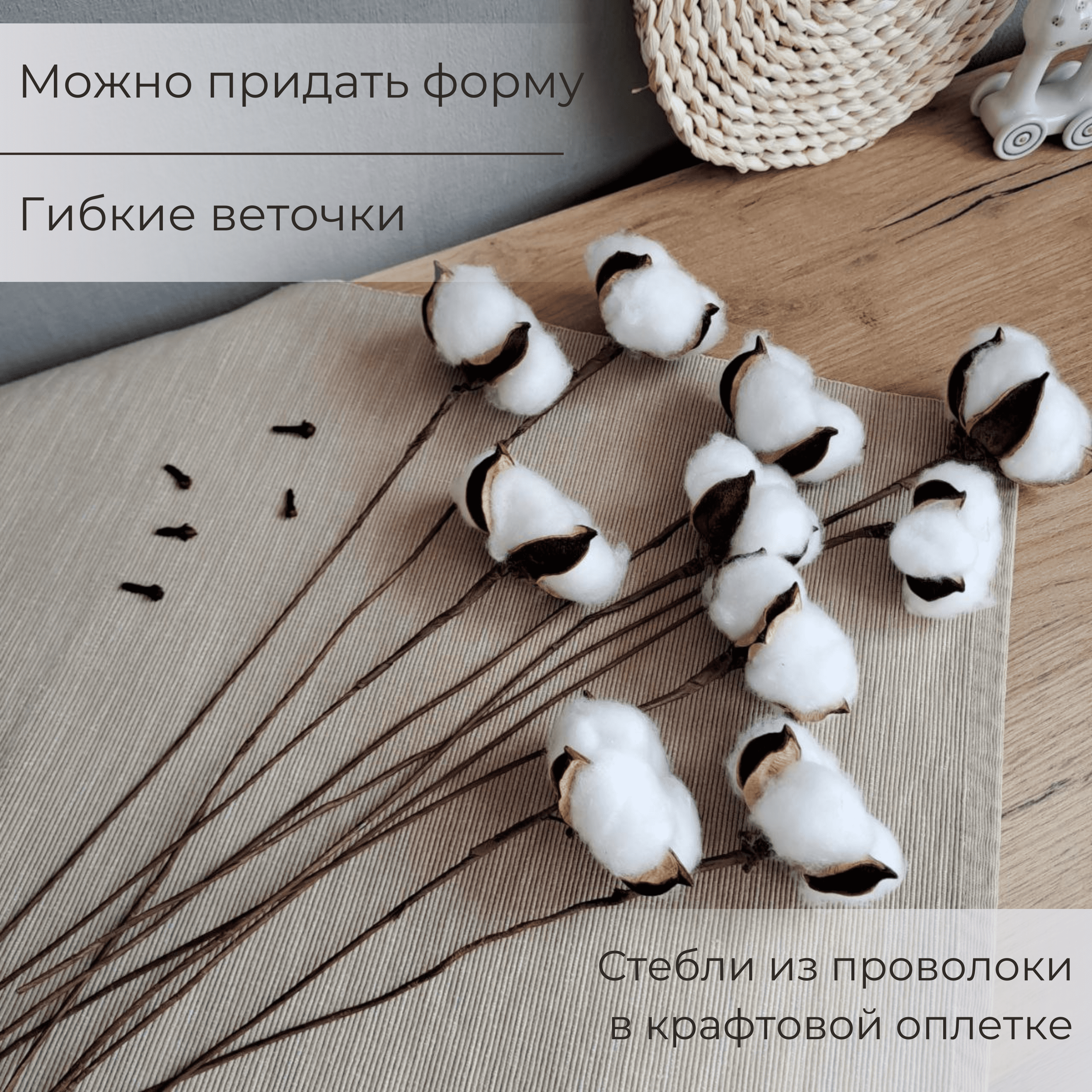 Хлопок сухоцвет для декора 10 шт, 30-35 см, декоративный букет из сухоцветов, белый информация: