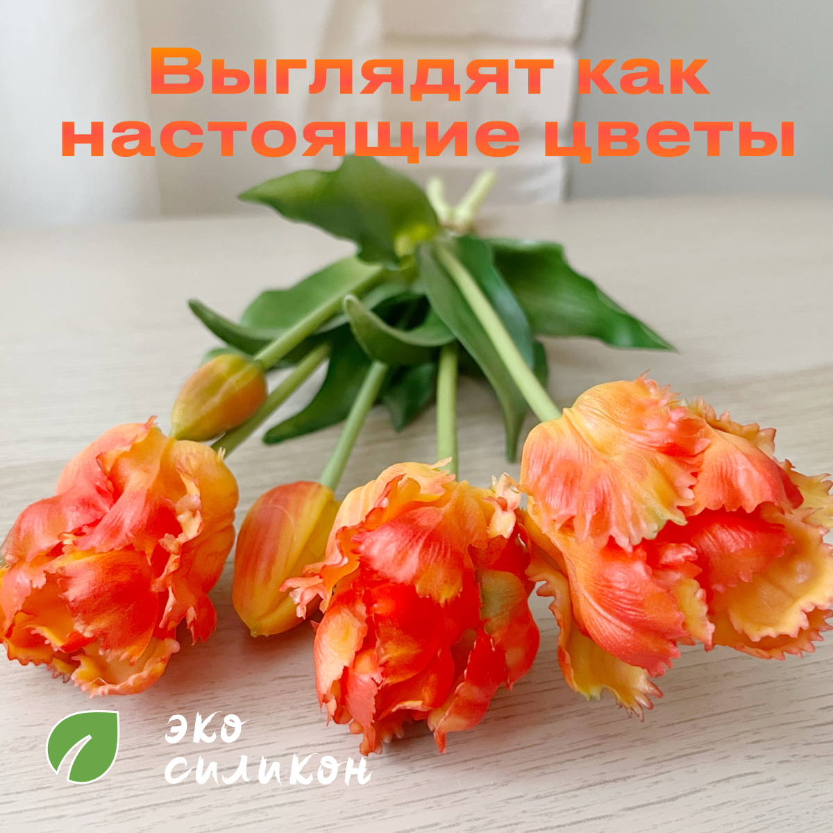Отзывы на Тюльпаны силиконовые попугайные / Букет из 5 шт / Цвет Оранжевый