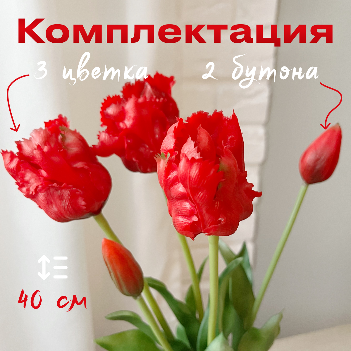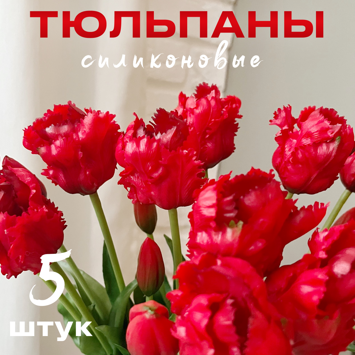 Отзывы на Тюльпаны силиконовые попугайные / Букет из 5 шт / Цвет Красный