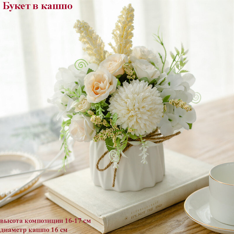 10 цен на Букет с цветами в вазе для декора цветы в кашпо интерьерное украшение аксессуар из цветов хризантемы гортензии розы