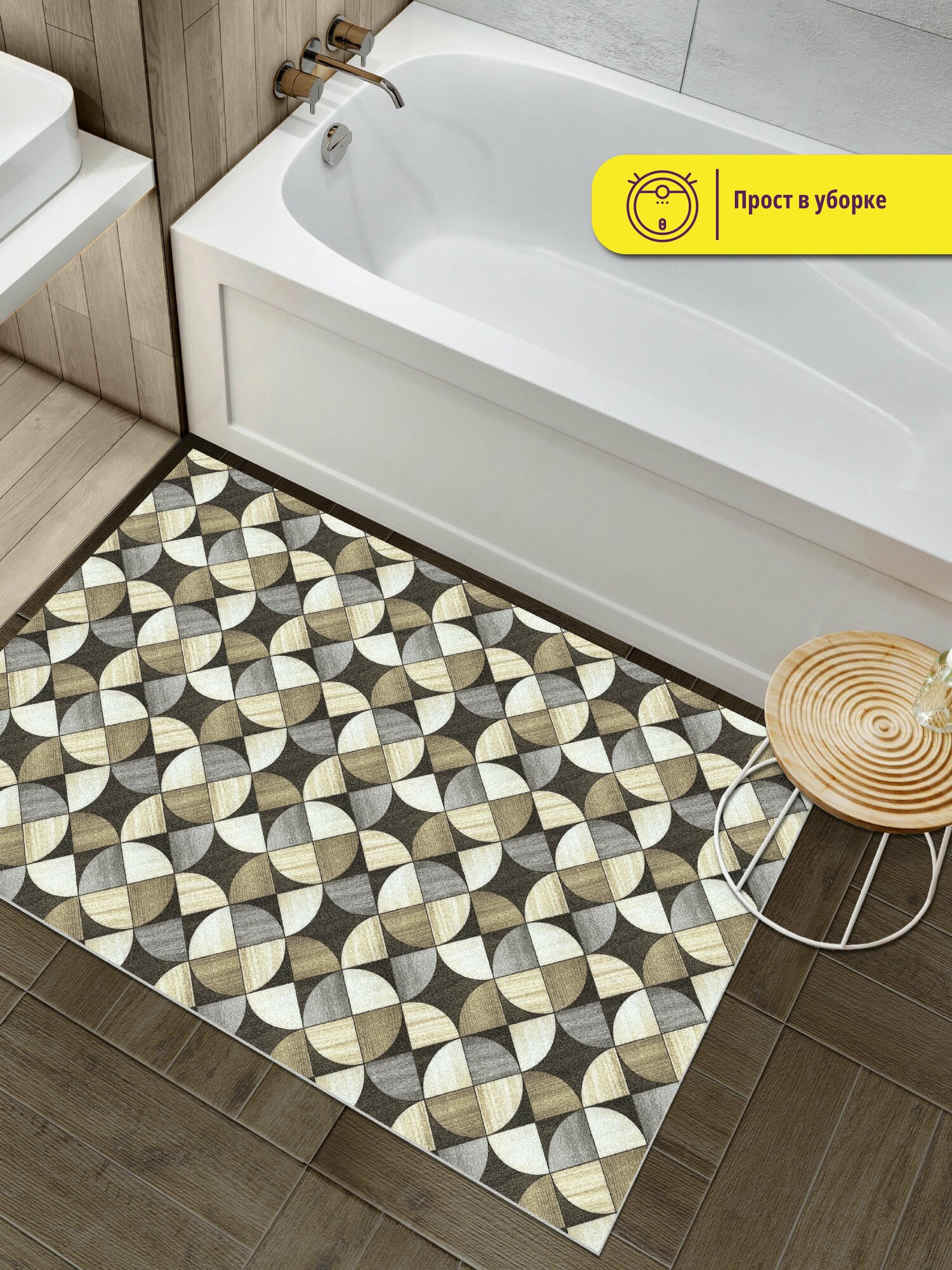Коврик придверный вырезной PRINT/ 100х150см/ Плитка Карфаген бежевый с серым, коврик прикроватный, коврик для кухни, для ванной 2 309 ₽