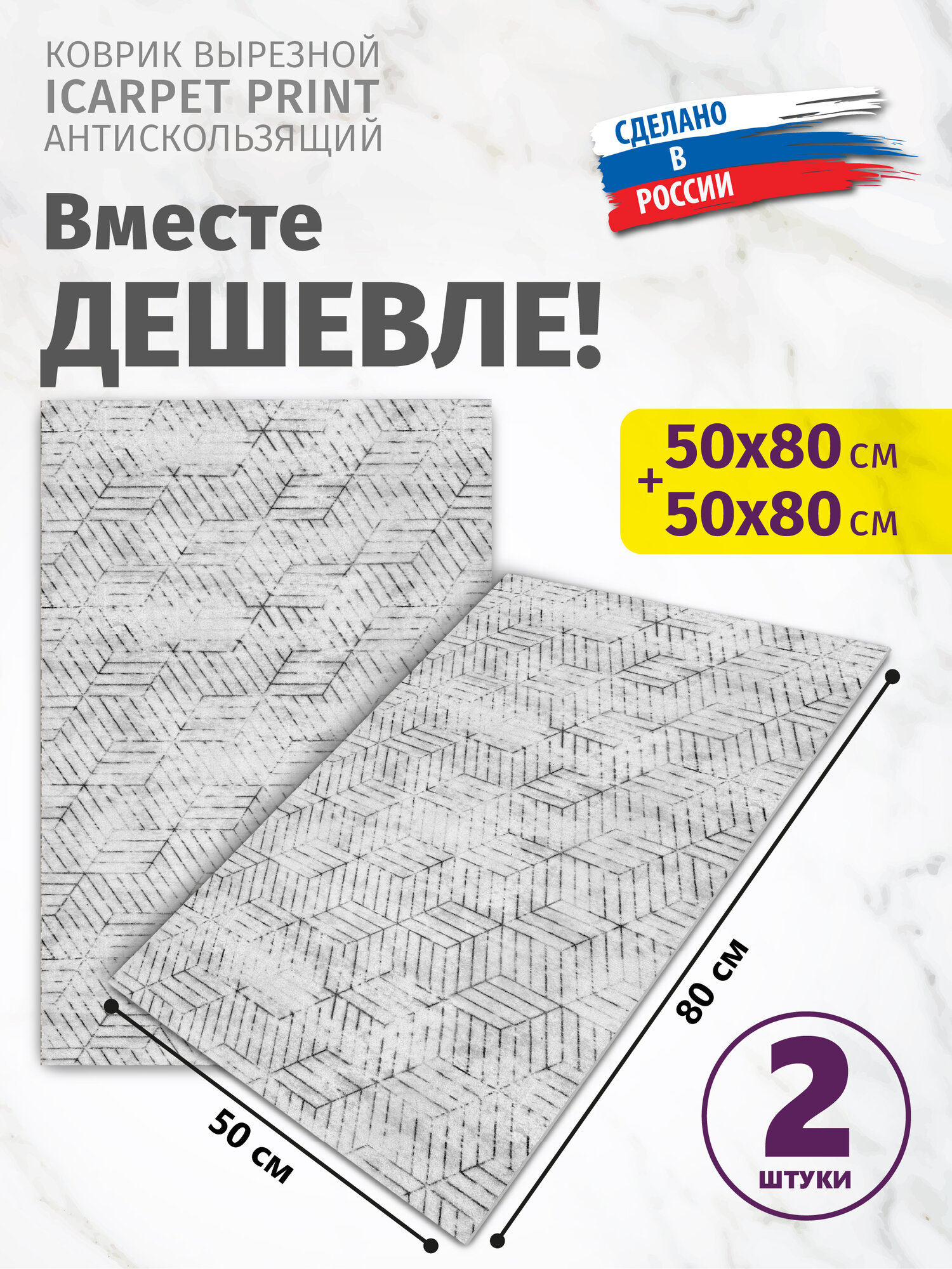 10 цен на Коврик вырезной Icarpet PRINT, 2 шт 50х80 в комплекте соты Омега светло-серый 142, антискользящий влаговпитывающий
