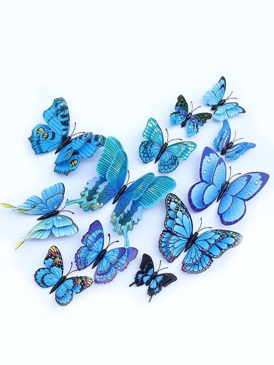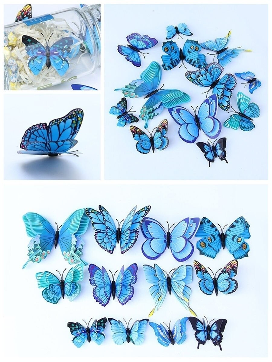 10 цен на Наклейки интерьерные 3Д бабочки синие на стену от imaginart