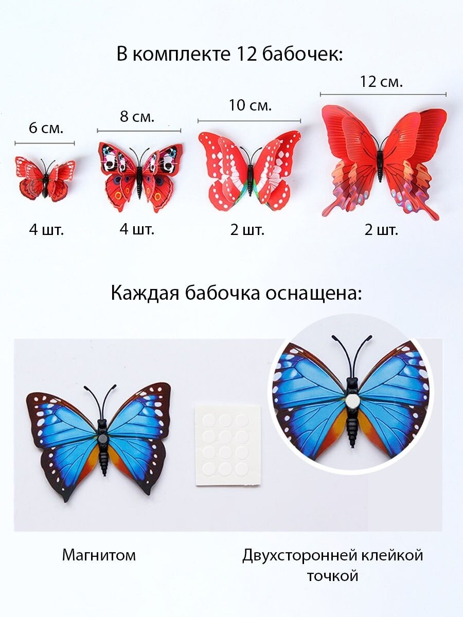 Наклейки интерьерные 3Д бабочки красные на стену от imaginart 179 ₽