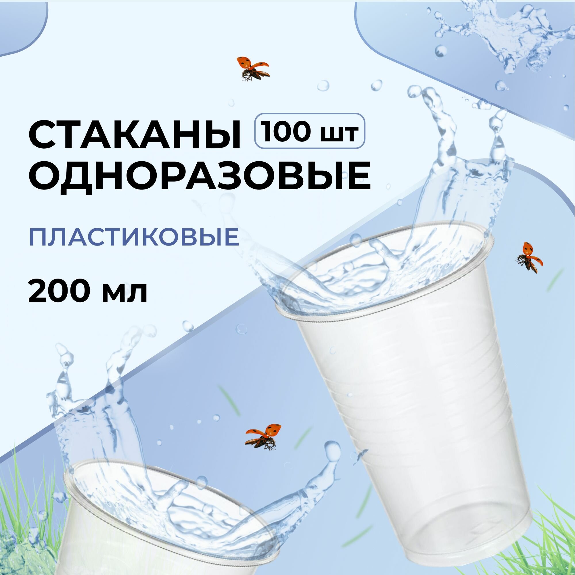Стакан одноразовый Бюджет пластиковый прозрачный 200 миллилитров 100 штук в упаковке, 661982 503 ₽