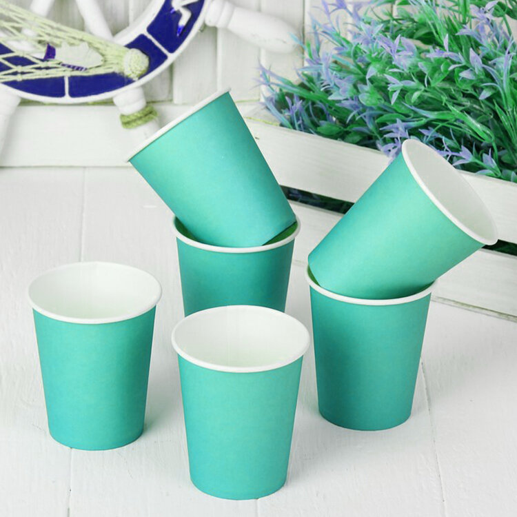 10 цен на Одноразовые бумажные стаканы мятного (бирюзового) цвета 8 шт. 255 мл.