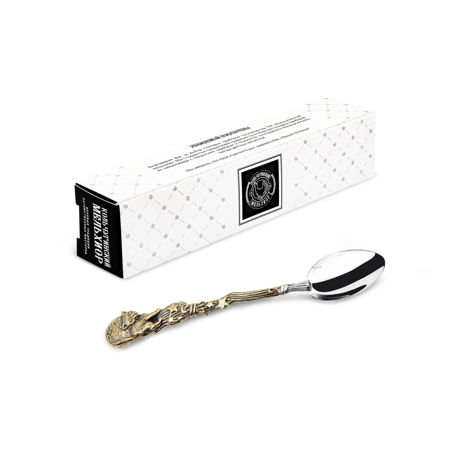 Ложка чайная Волшебный кот латунная с посеребрением информация: