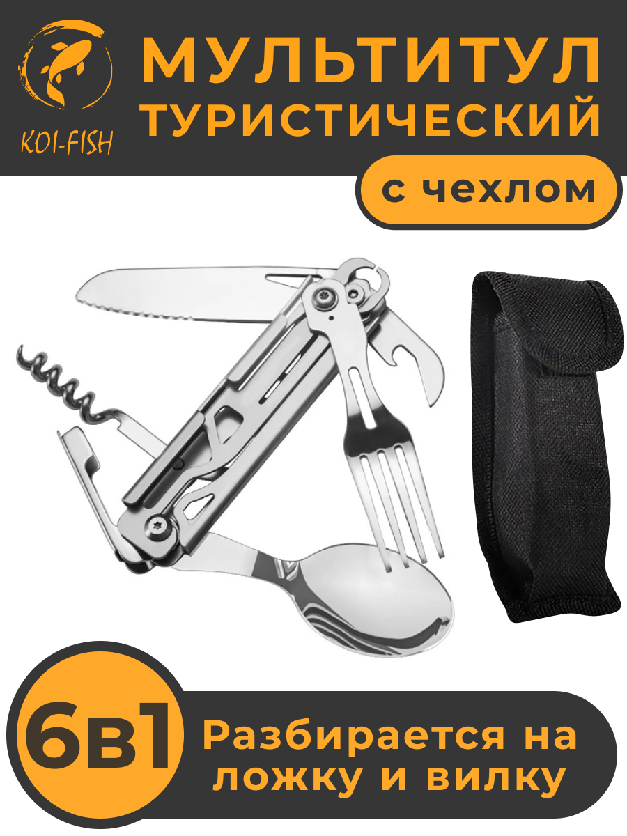 Набор столовых приборов из нержавеющей стали туристический / складная ложка нож вилка штопор открывашка 6в1, мультитул туристический информация: