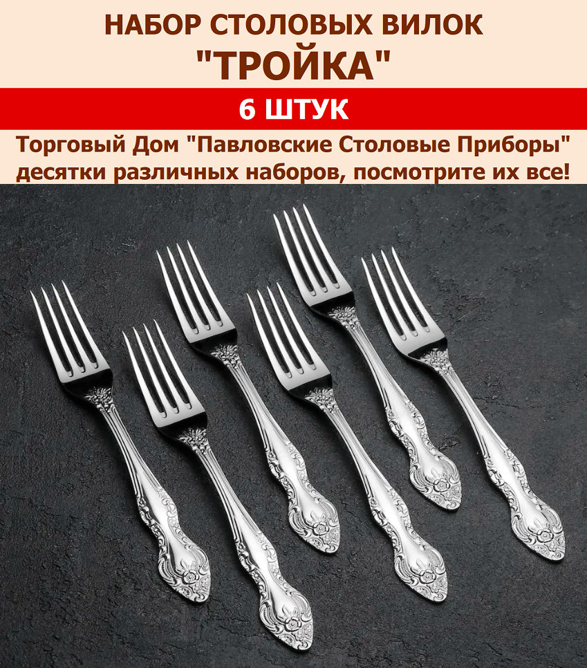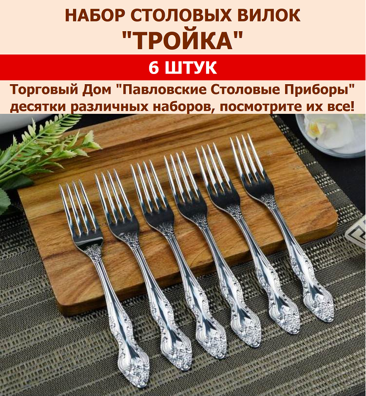 10 цен на Вилка столовая Тройка, 6 штук.