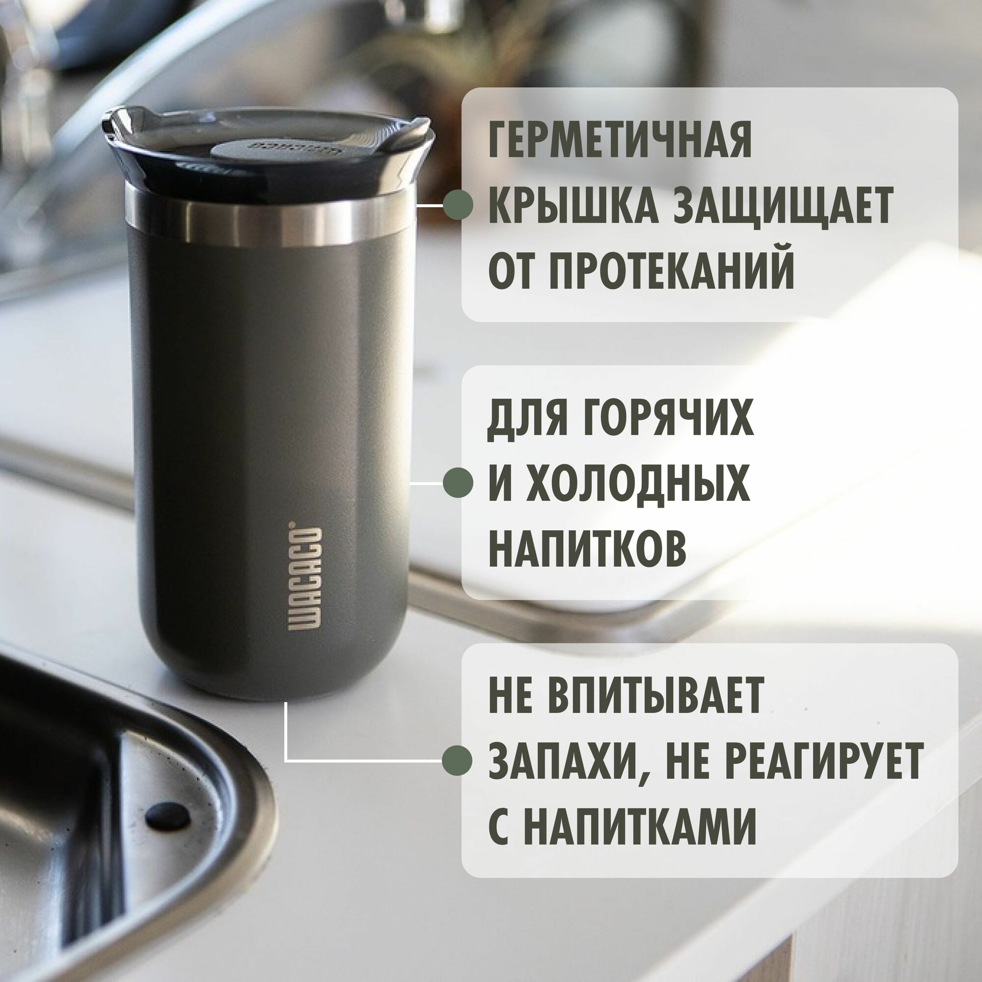 Отзывы на Изотермическая кружка для кофе WACACO Octaroma с вакуумной изоляцией, цвет серый.