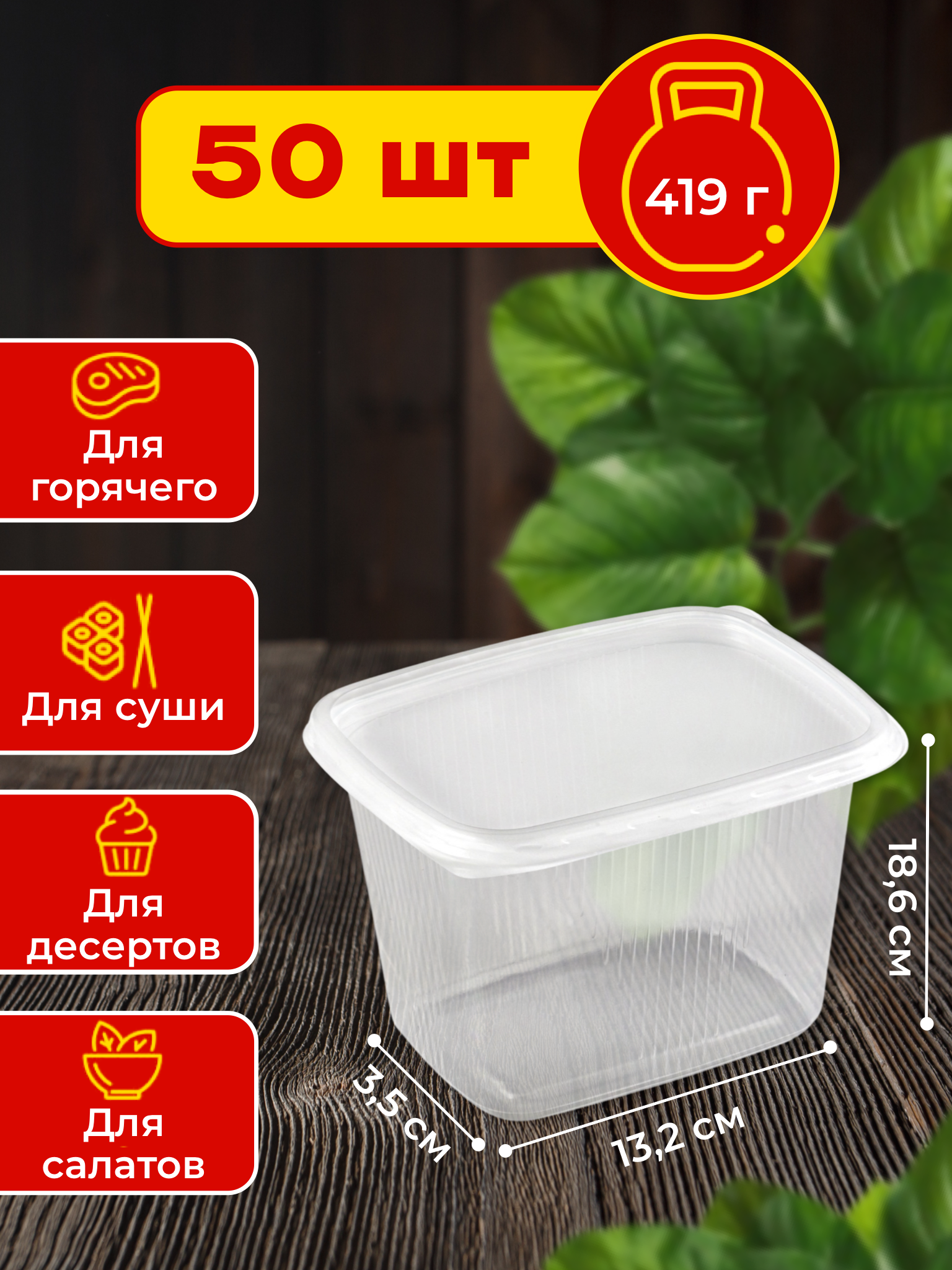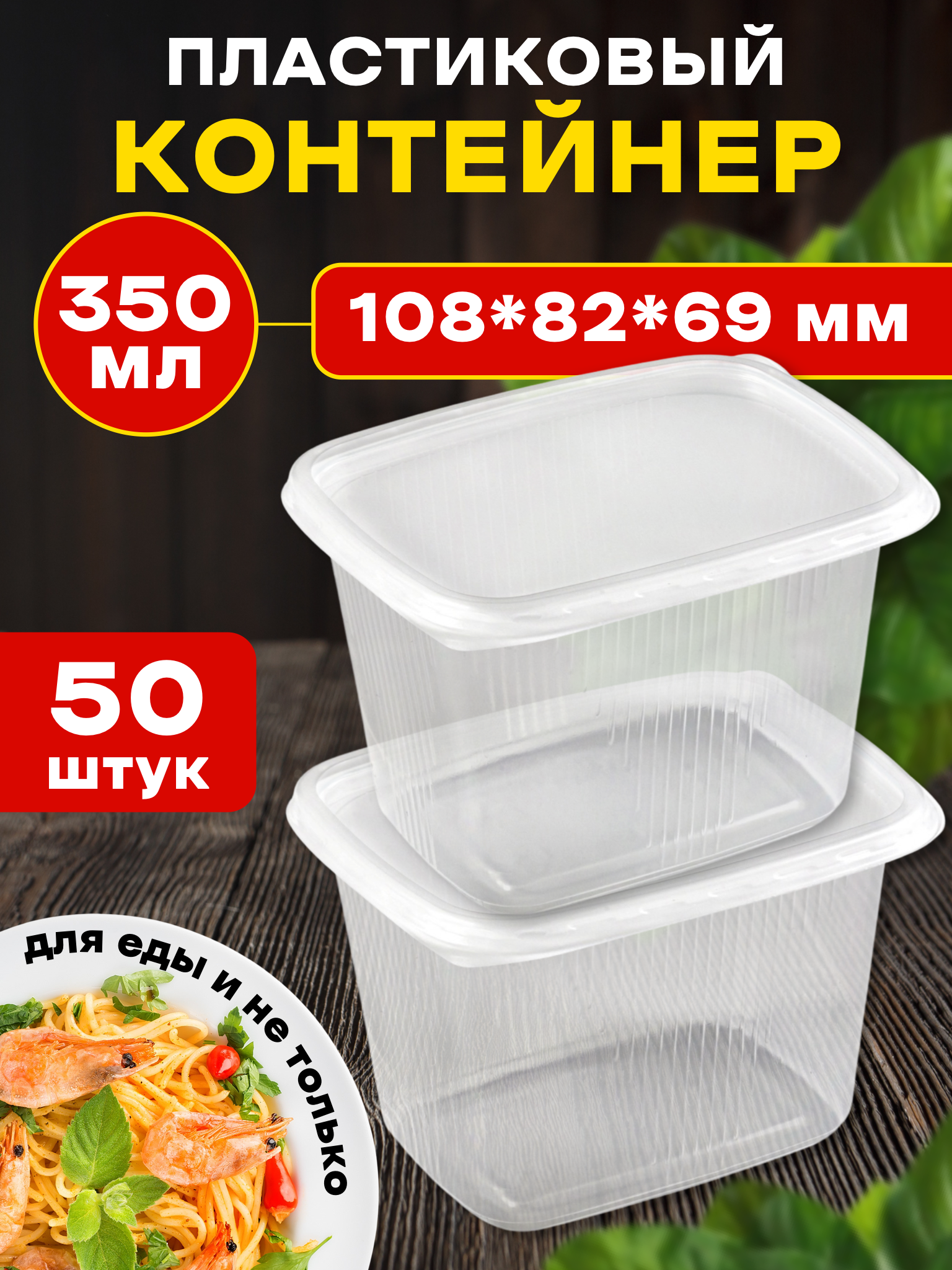 Контейнеры пластиковые для еды с крышкой, одноразовые, 350мл, 50 штук информация: