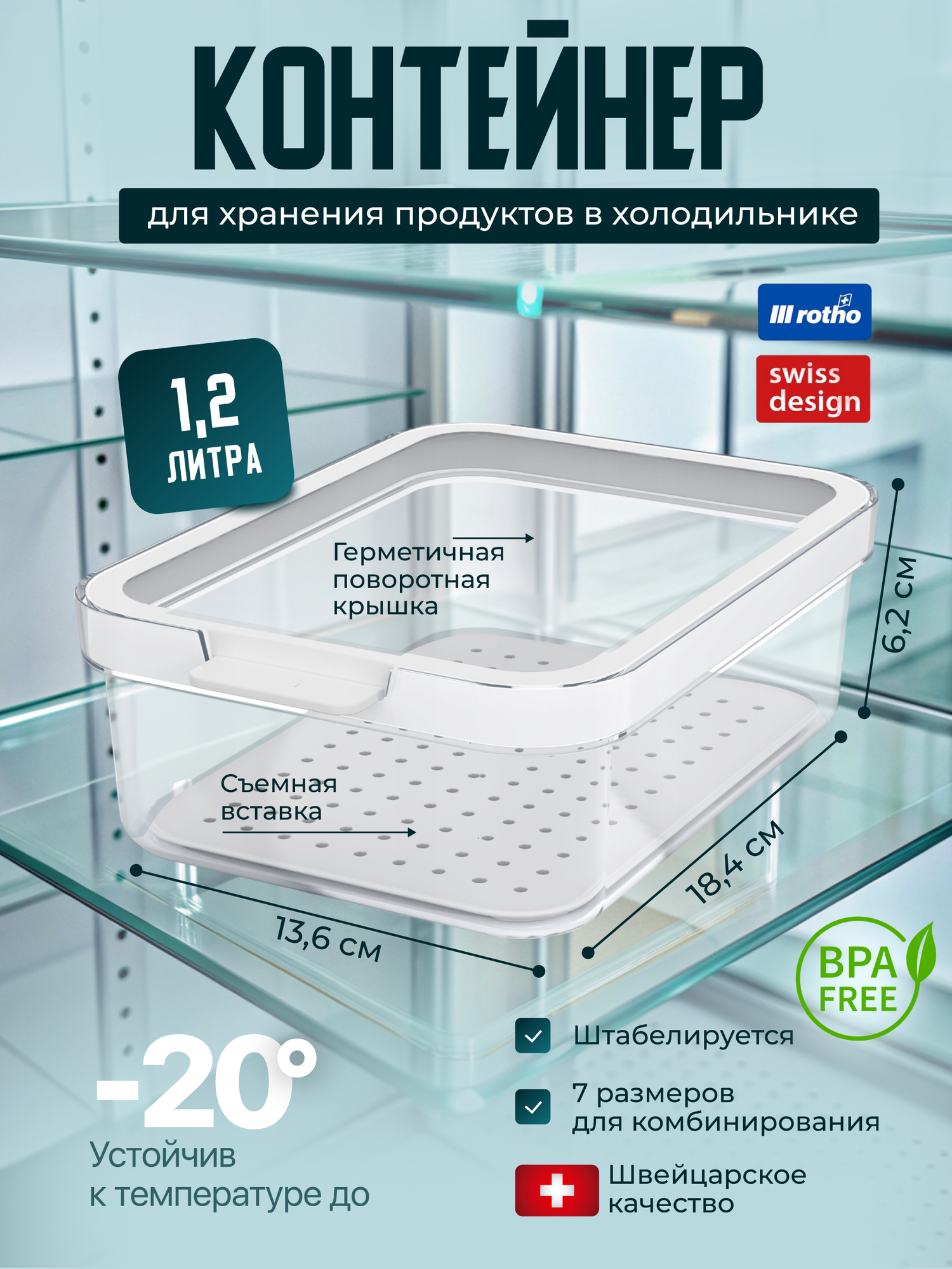 Контейнер для хранения продуктов, органайзер для холодильника Rotho Cauma 1,2 л информация: