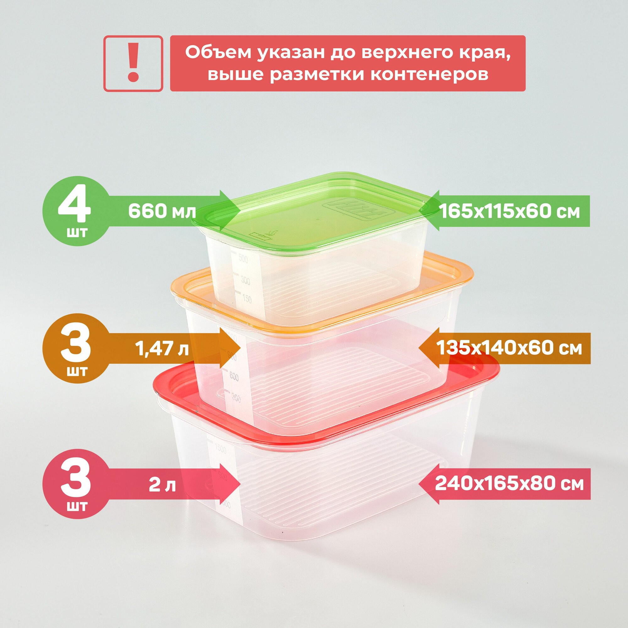 Набор контейнеров для еды Hitt , 5 штук, пластиковые: 0.23 л, 0.5 л, 0.9 л, 1.55 л, 2.65 л