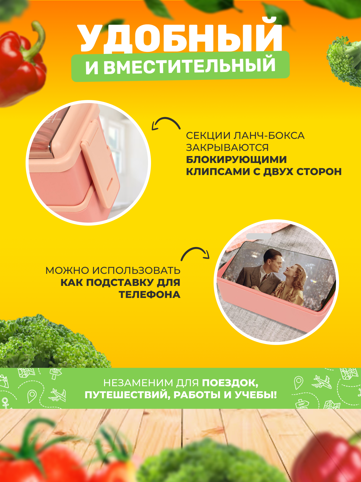 10 цен на Ланч-бокс отделениями и приборами, 1,4 л, розовый