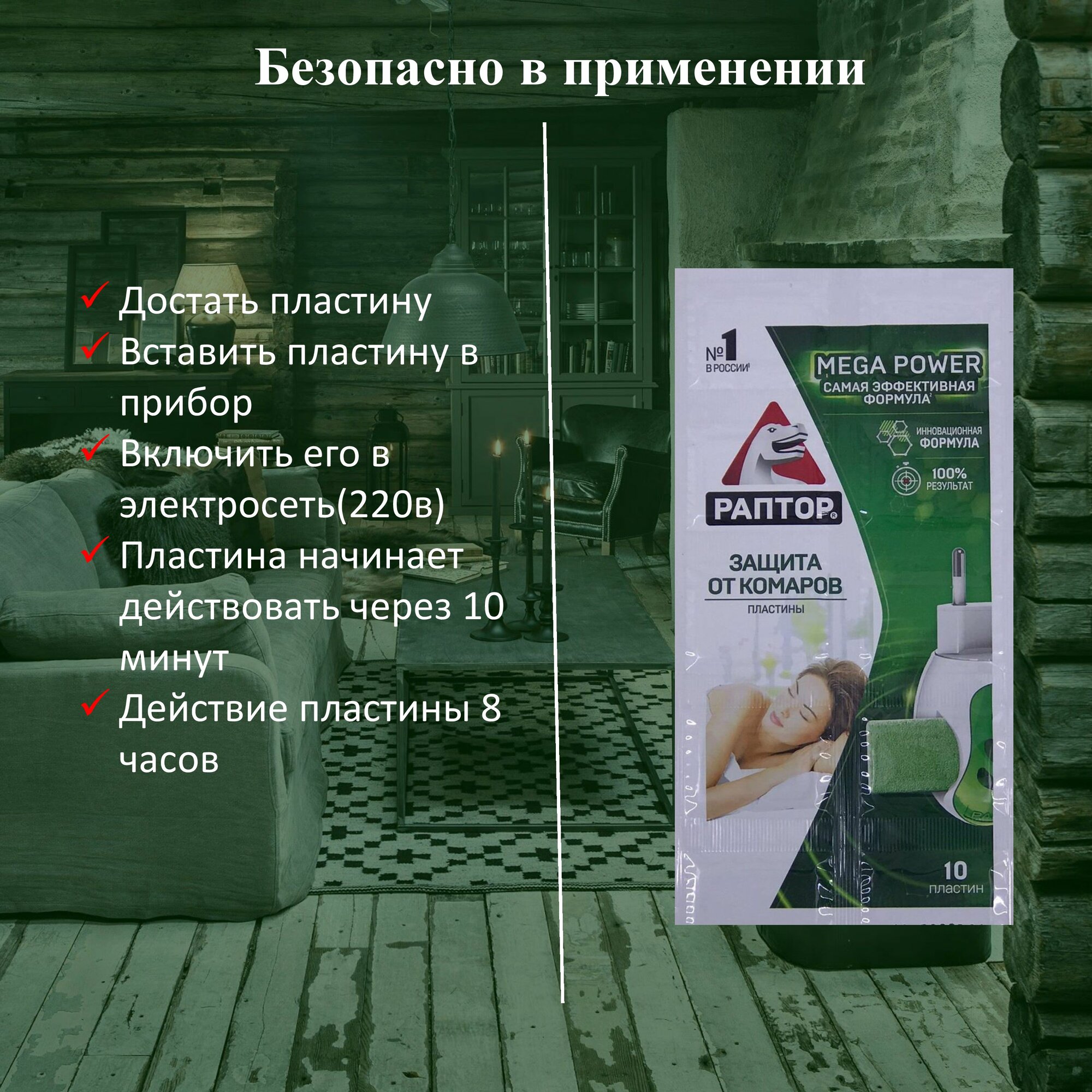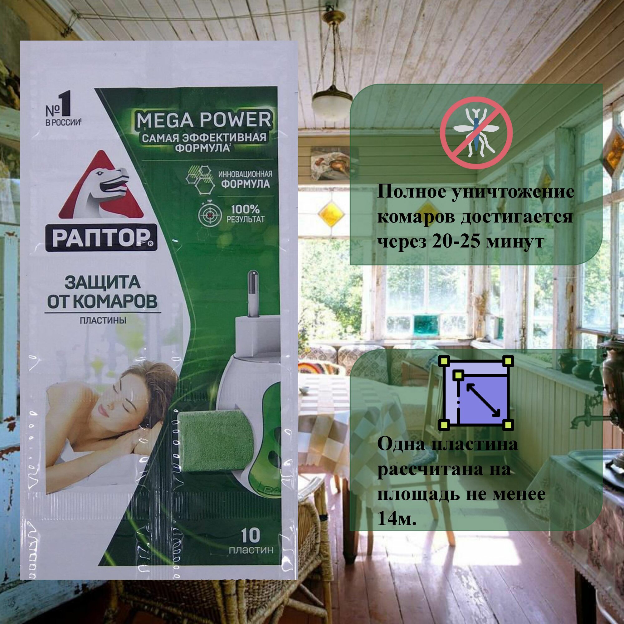 Раптор, Пластины от комаров без запаха, 30 шт (3 упаковки по 10 шт) информация: