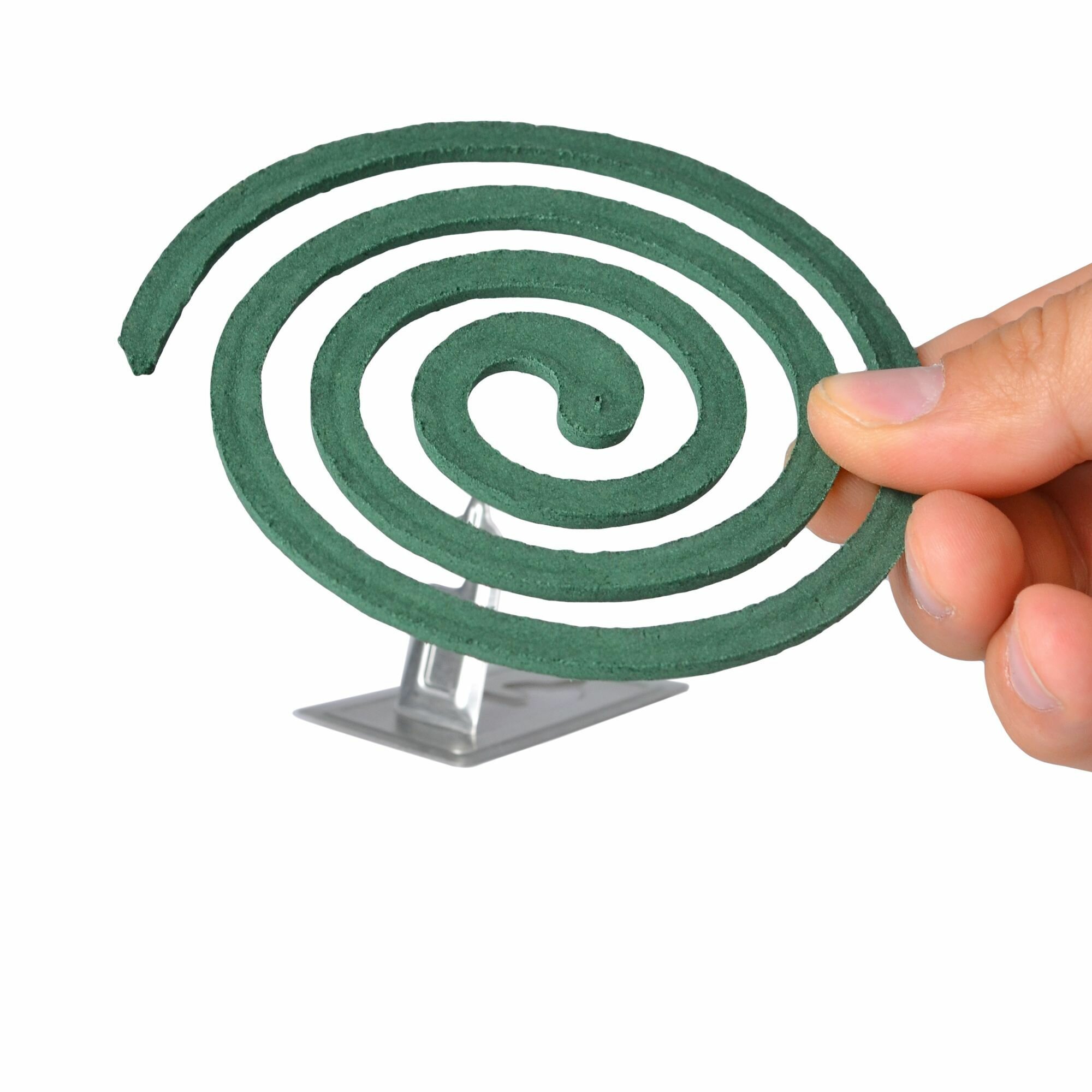 | Способ применения | начиная от центра, осторожно разделить спирали. Спираль установить на прилагаемую металлическую подставку, при этом острие подставки предварительно отогнуть и вставить в прорезь на спирали. Конец спирали поджечь, пламя задуть. По окончании обработки спираль затушить и сохранять для дальнейшего использования. Время полного сгорания спирали 7-8 часов. Повторные обработки проводят при появлении комаров. |