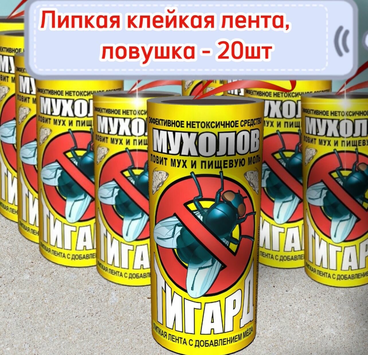 Липкая лента от мух 20 шт. / Мухоловка, ловушка, липучки для мух, клейкая лента от мух/Тигард информация: