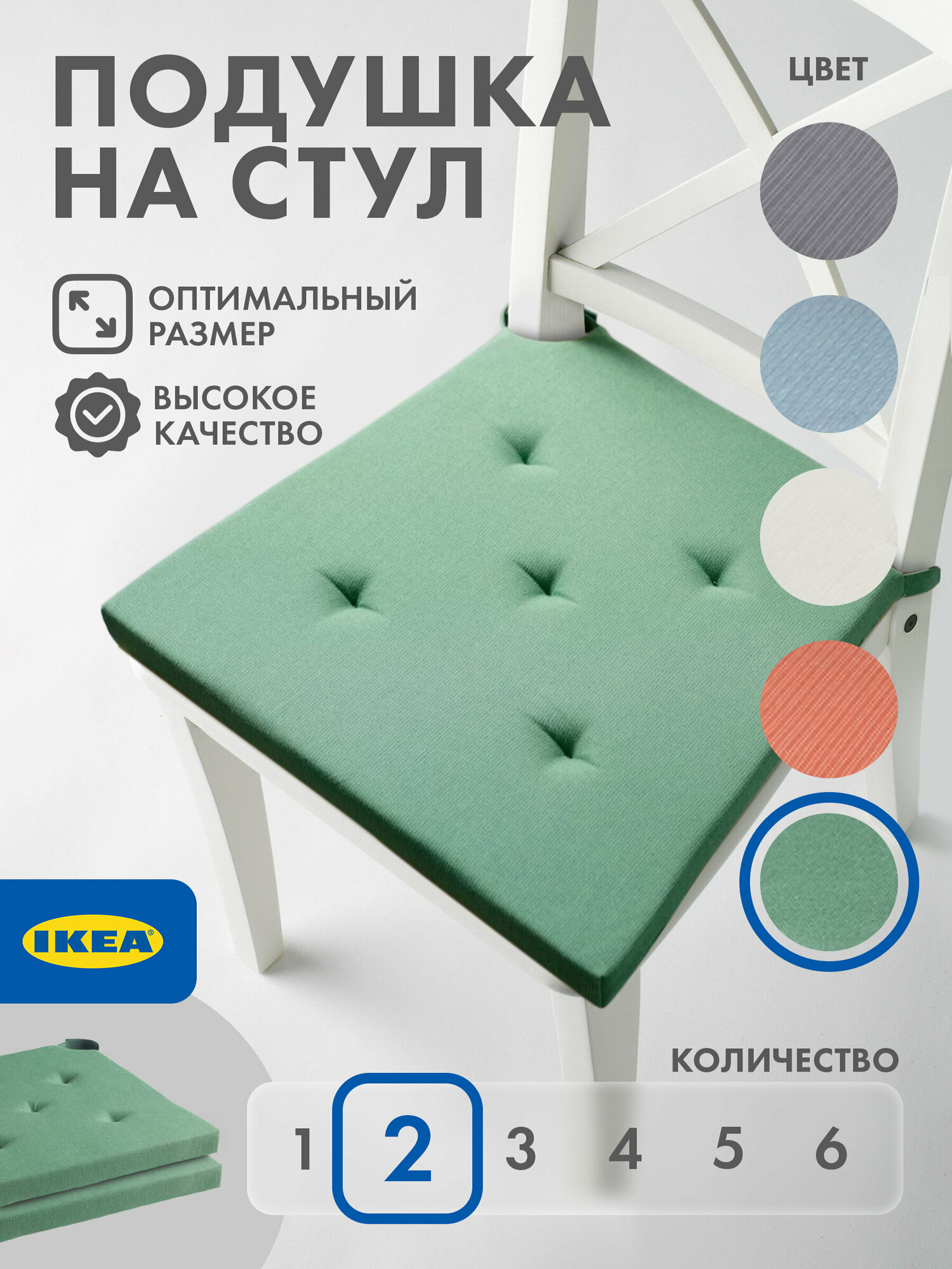 Подушка на стул икеа юстина, 35/42 x 40 см, зеленый 2 шт информация: