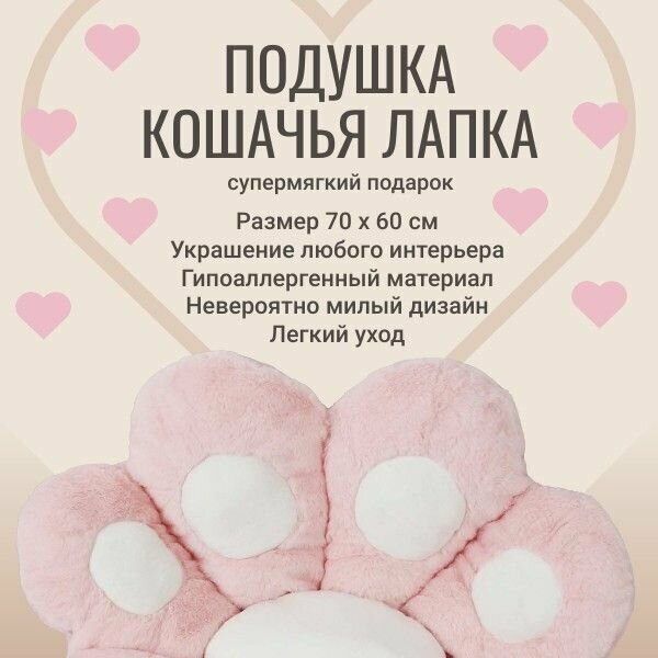 Мягкая подушка Кошачья лапка, розовая, 70*60, универсальная, сидушка, лежанка, коврик, на стул информация: