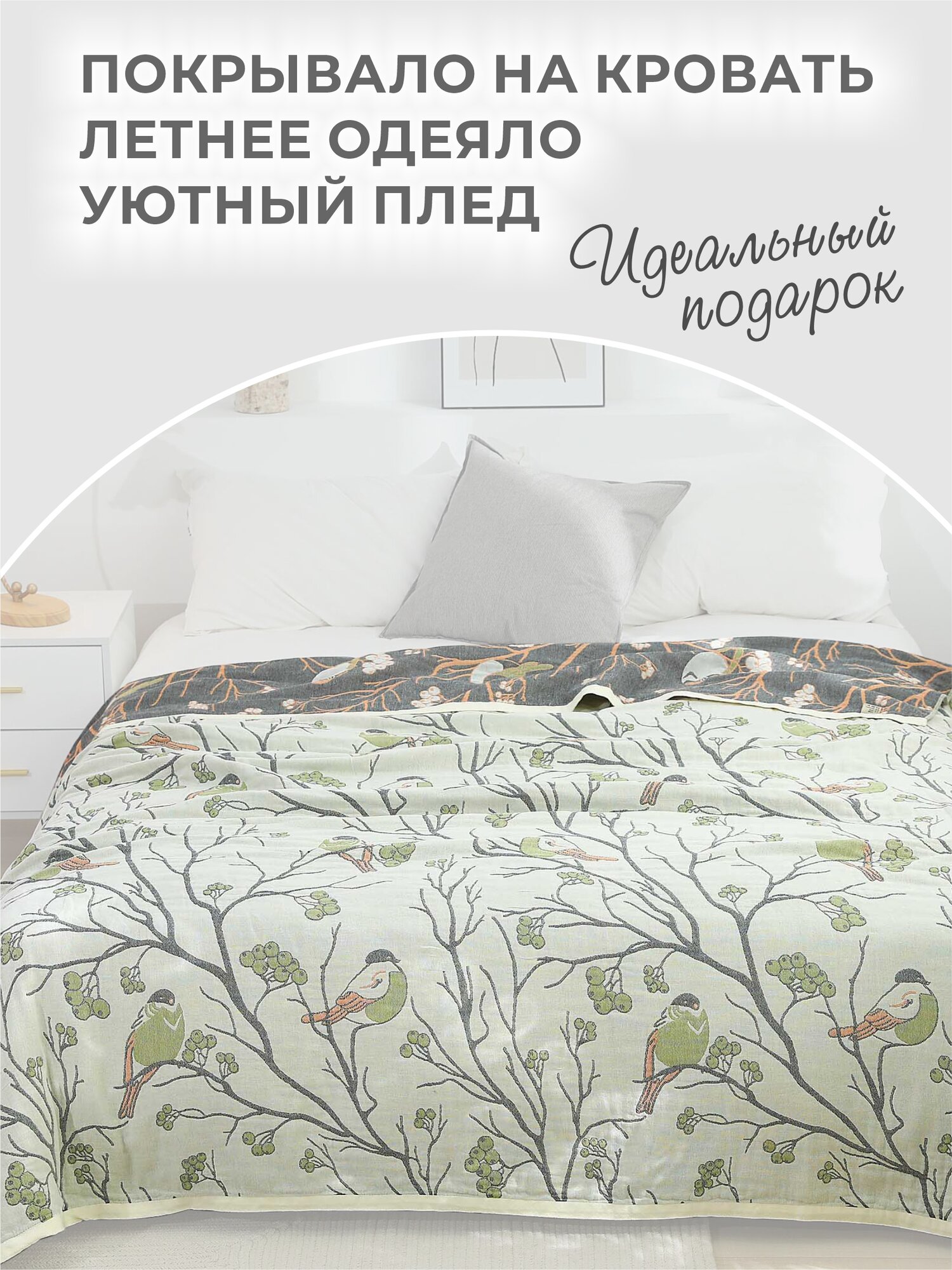 Отзывы на Покрывало на кровать Плед 200х230 "Птицы" Хлопок Муслиновое одеяло