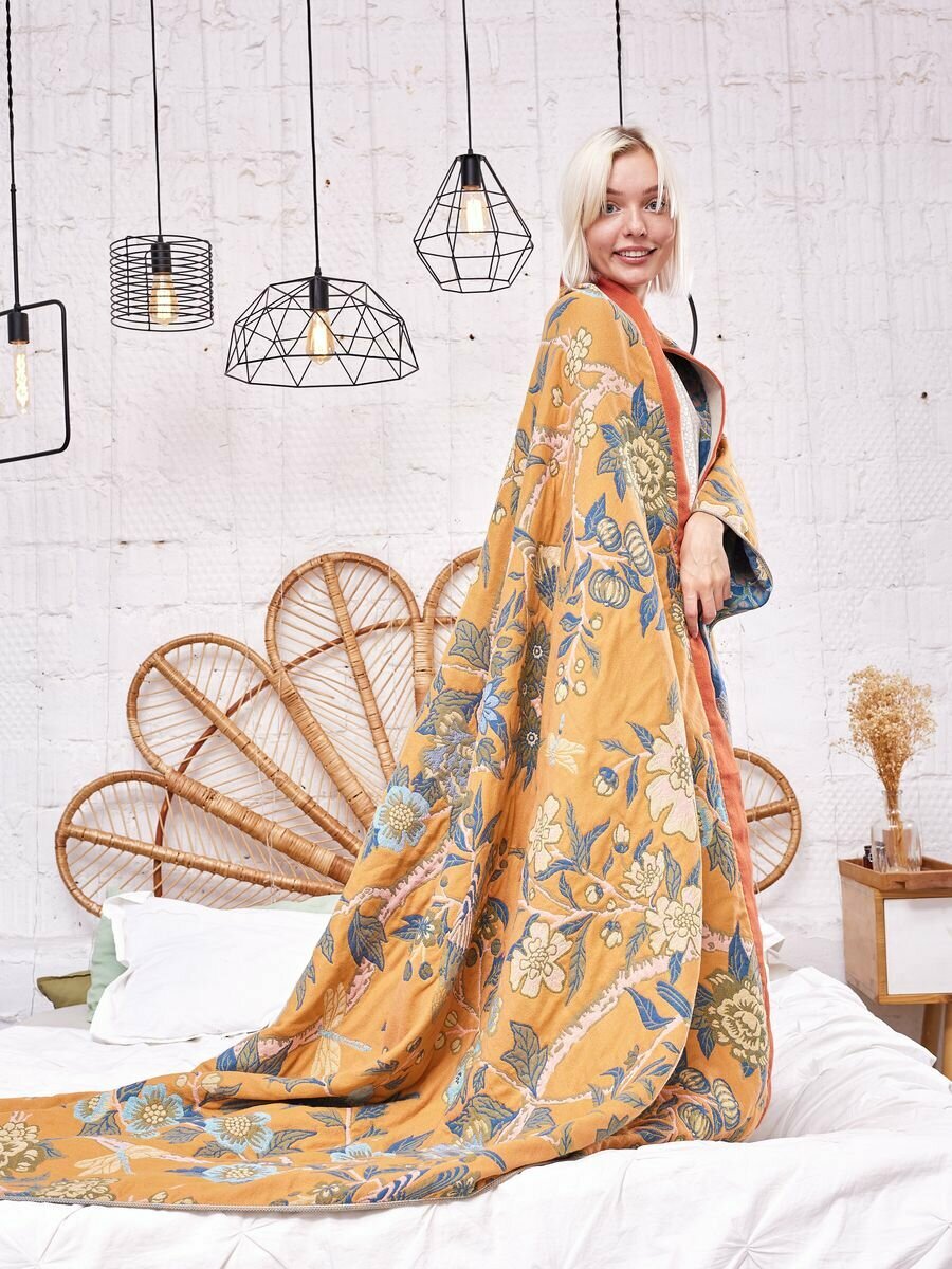 Покрывало на кровать Sundelica Плед 200х230 "Цветочная фантазия" Хлопок Муслиновое одеяло
