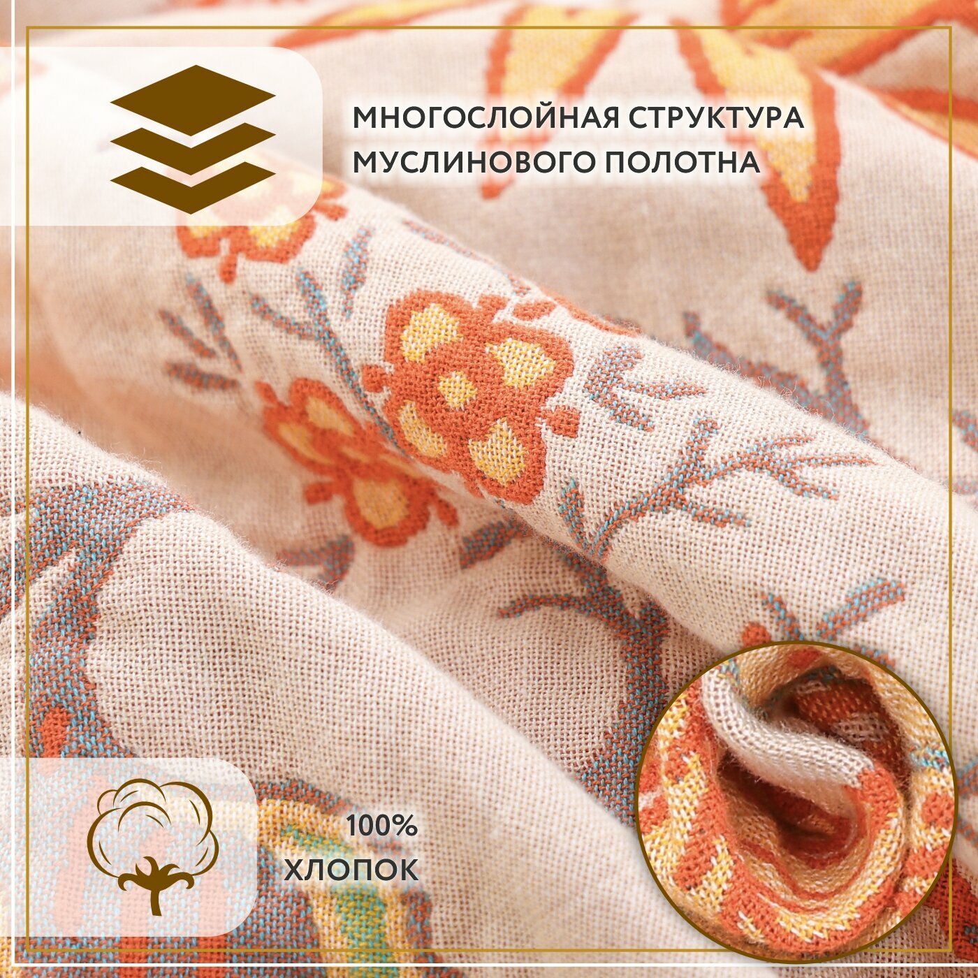 Покрывало на кровать Sundelica Плед 200х230 "оранж" Хлопок Муслиновое одеяло 4 896 ₽