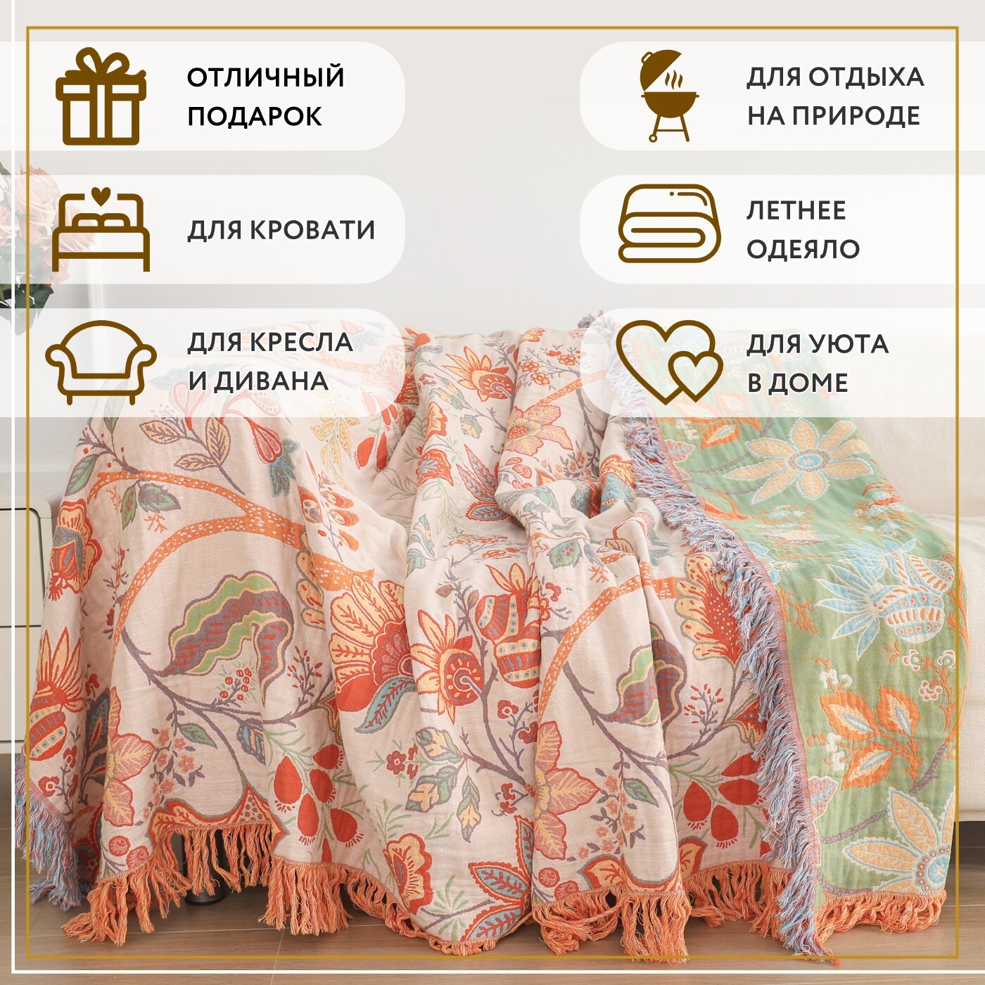 Отзывы на Покрывало на кровать Sundelica Плед 200х230 Хлопок Муслиновое одеяло