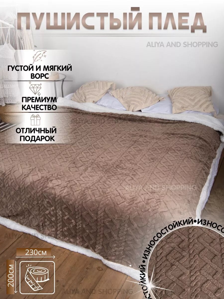 10 цен на Плед шерстяной , барашка евро 200*230 светло-коричневый