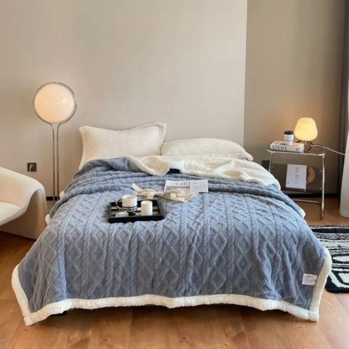 Плед шерстяной , барашка евро 200*230 серый деним 2 599 ₽