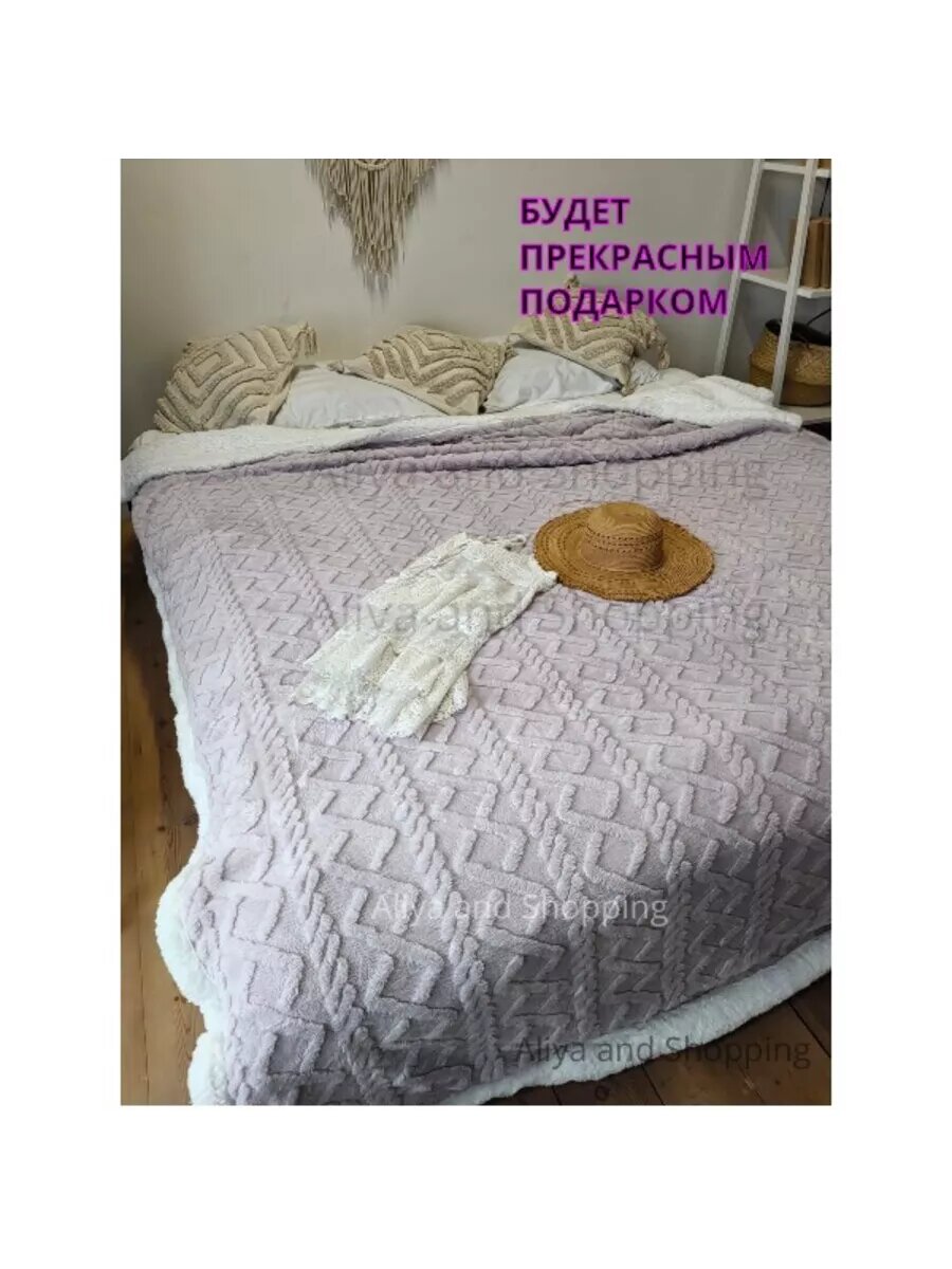 Плед шерстяной , барашка евро 200*230 светло-сиреневый информация: