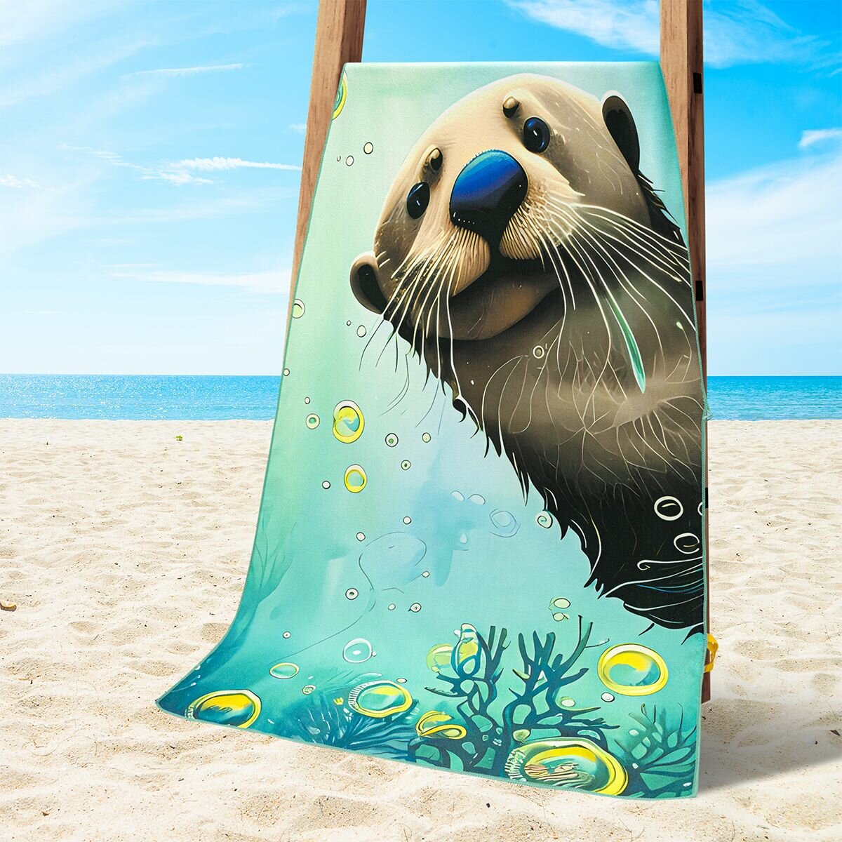 Пляжное полотенце из микрофибры Выдра, размер 70х140, 100% полиэстер информация: