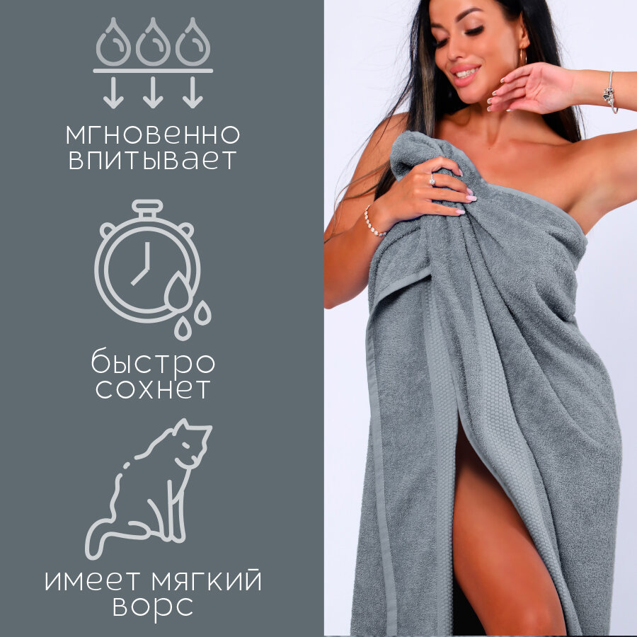10 цен на Полотенце банное махровое 100% хлопок Софатекс 100х150 для ванны и душа, цвет серый