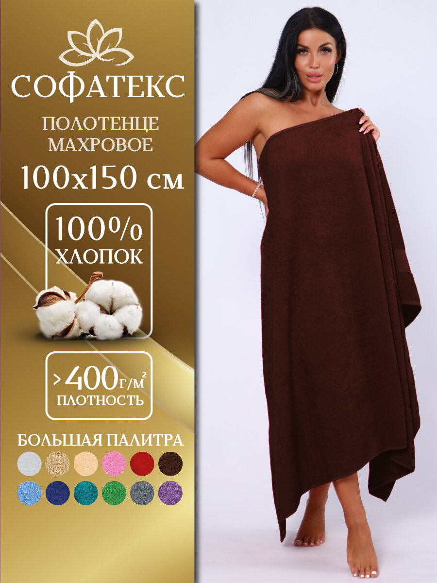 Полотенце банное махровое 100% хлопок Софатекс 100х150 для ванны и душа, цвет шоколадный информация: