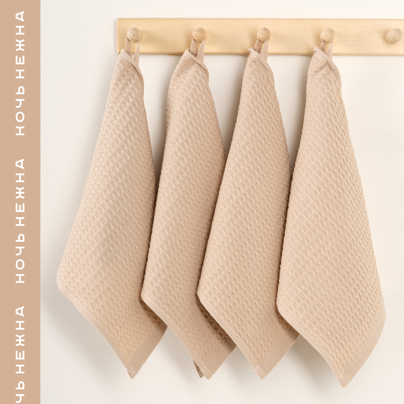 10 цен на Набор полотенец вафельных Ночь Нежна 30х60 Кол-во 4 шт. цвет бежевый, вафельное полотенце для рук и лица в ванную и в кухню