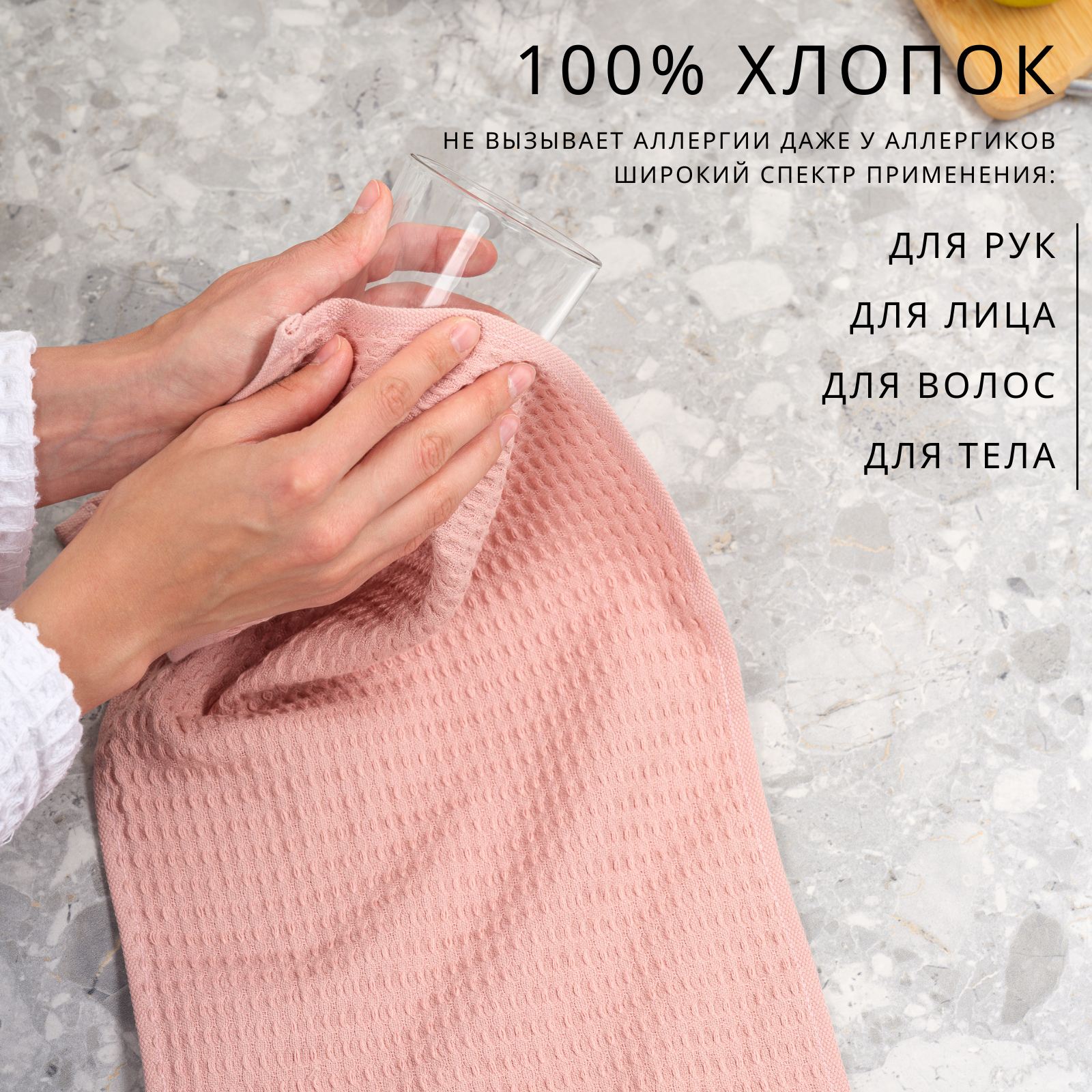 Набор полотенец вафельных Ночь Нежна 30х60 Кол-во 4 шт. цвет пыльная роза, вафельное полотенце для рук и лица в ванную и в кухню