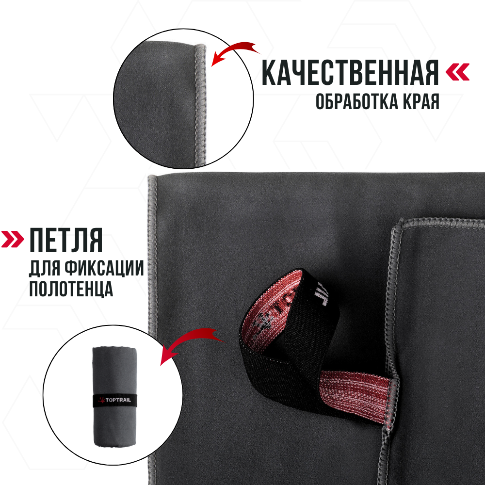 Отзывы на Полотенце спортивное из микрофибры TOPTRAIL, 80 х 130, серое, для бассейна / пляжное / банное