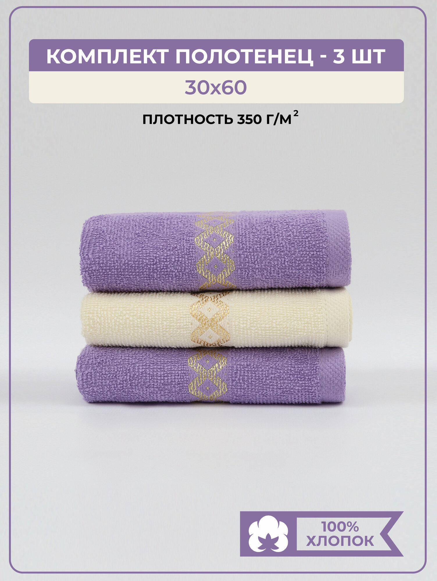 10 цен на Набор № 3309 махровых полотенец Сиреневый+кремовый 3 шт (30x60 3 шт)