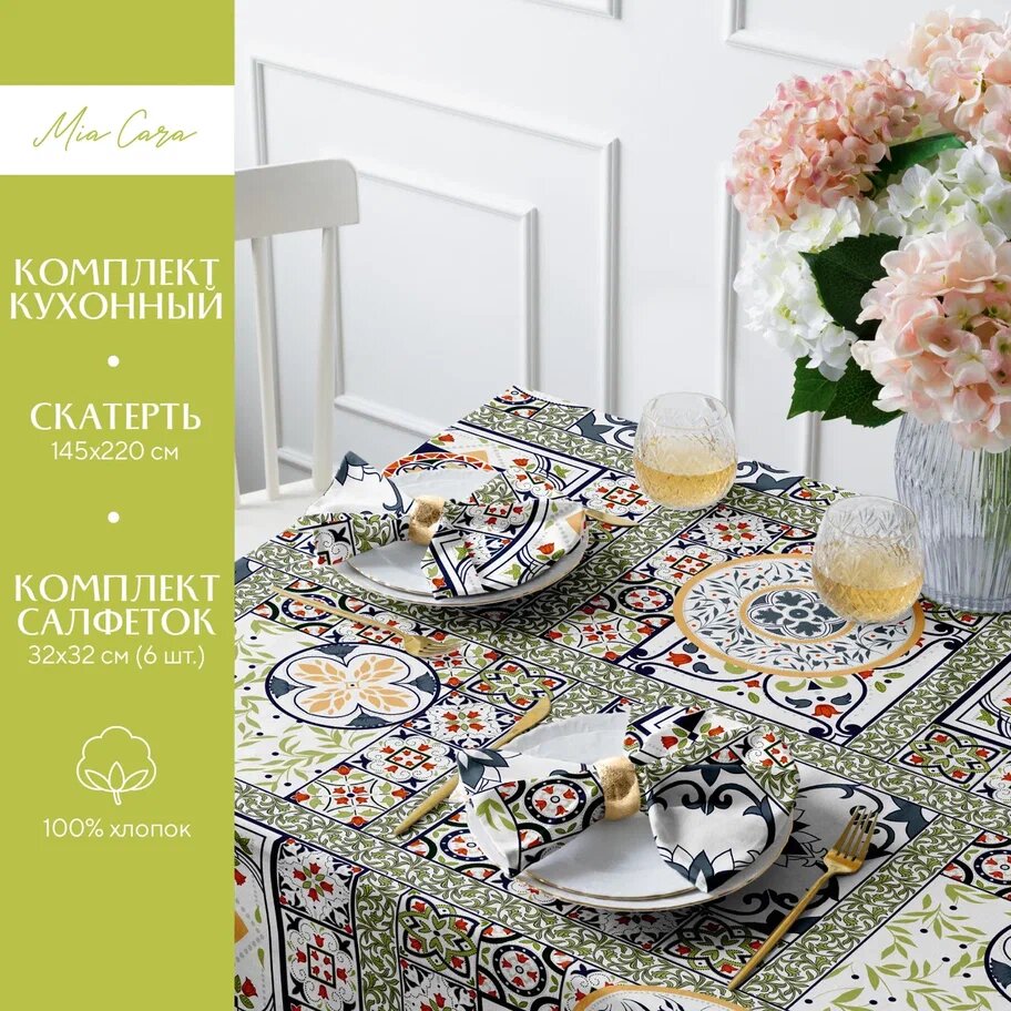 Комплект скатерть 145х220 + 6 салфеток 32х32 "Mia Cara" Bottega Verde 1 339 ₽