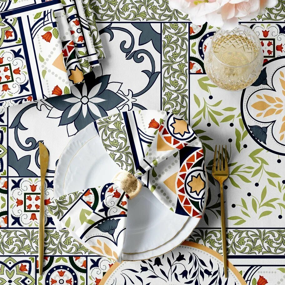 Отзывы на Комплект скатерть 145х220 + 6 салфеток 32х32 "Mia Cara" рис 30363-1 Азулежу