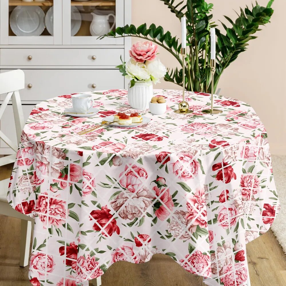 Скатерть рогожка 145х145 "Mia Cara" рис 14056-1 Душистый пион 719 ₽