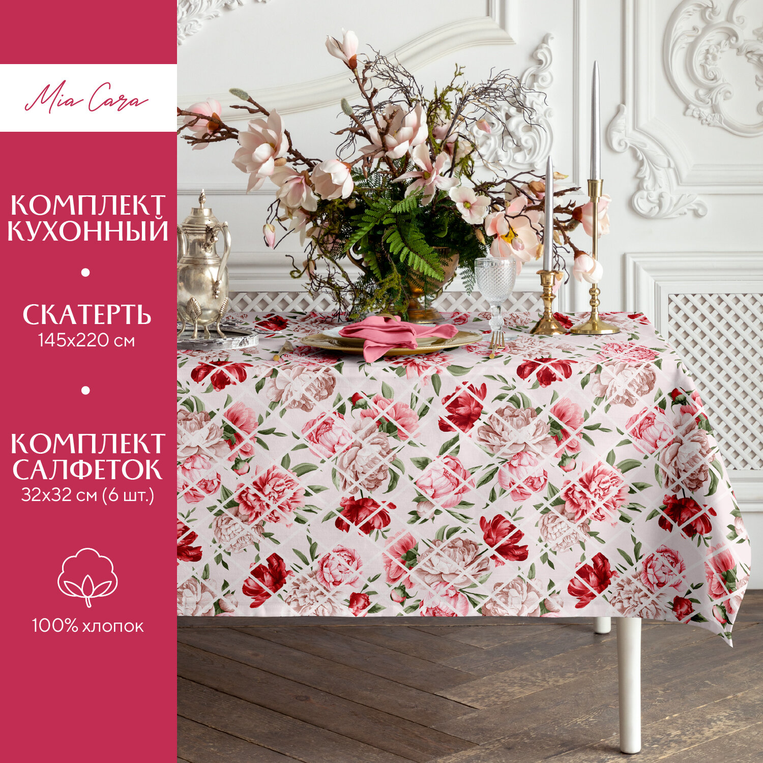 Комплект скатерть 145х220 + 6 салфеток 32х32 "Mia Cara" 14056-1/14057-1 Душистый пион 1 237 ₽