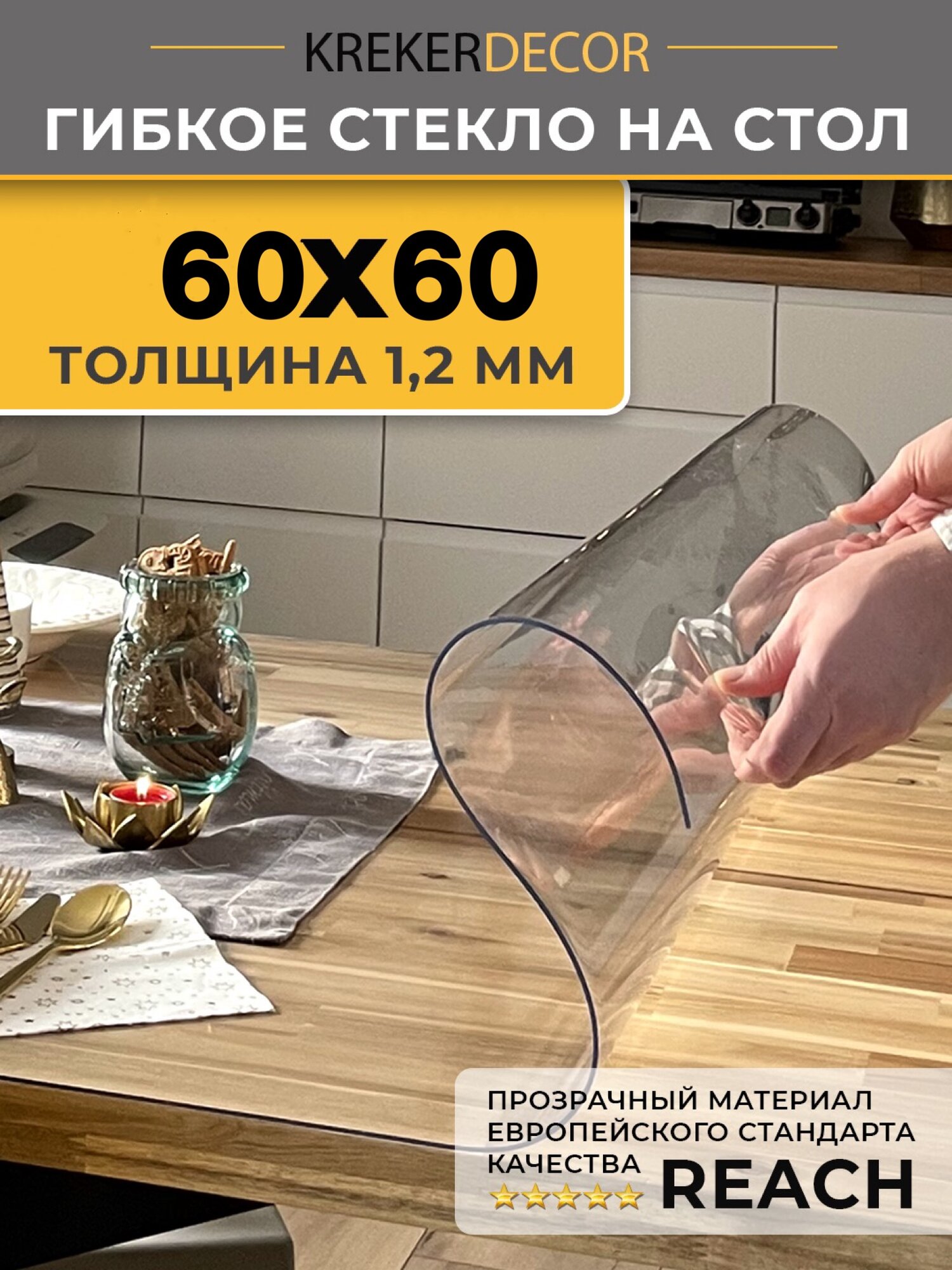10 цен на Скатерть на стол гибкое стекло, 60х60 см, 1.2 мм, прозрачная