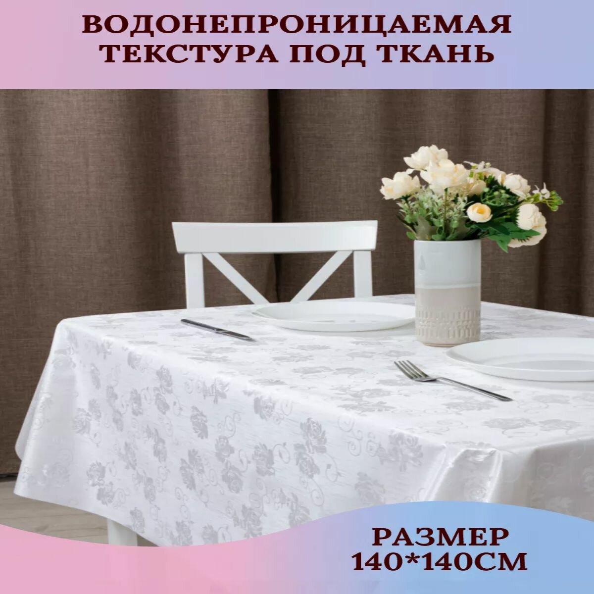 Скатерть клеенка Шампань белый 140х140 см информация: