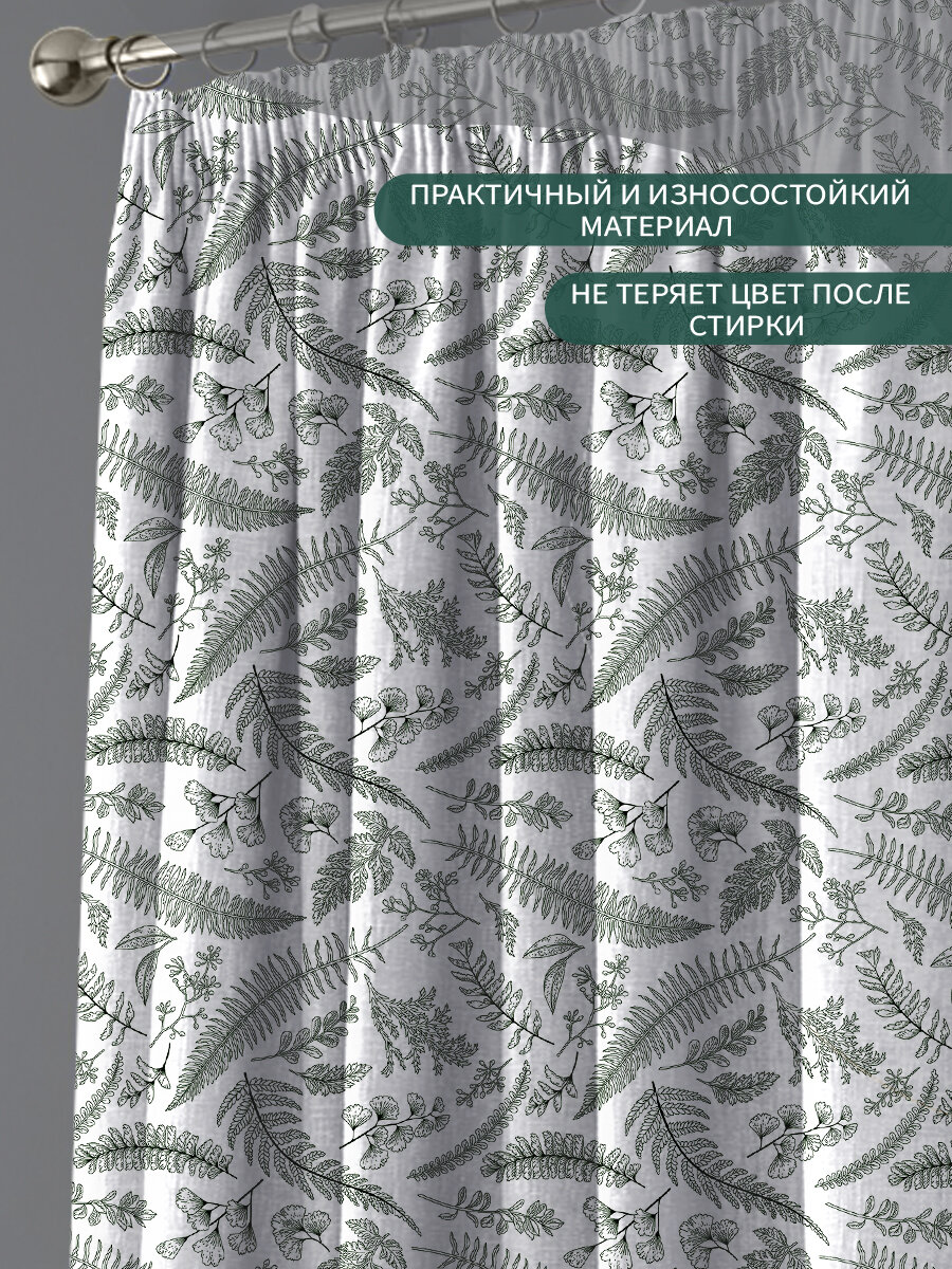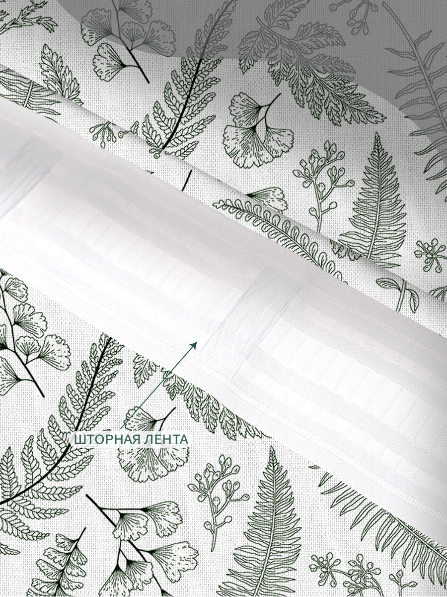 Штора кухонная Василиса 145х260 см, Рогожка, 100% хлопок, Тесьма, Травы 1 160 ₽