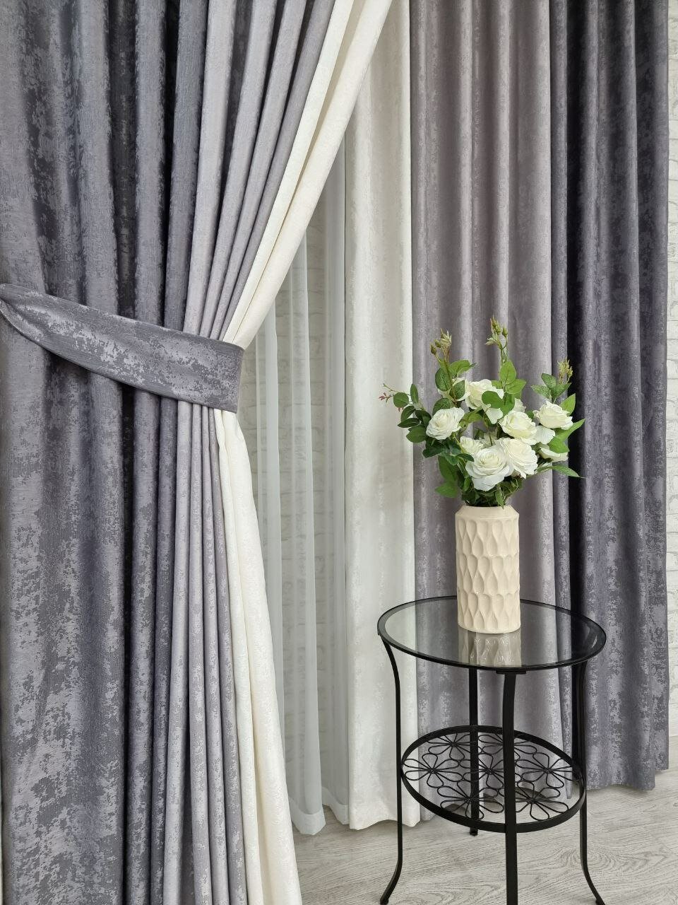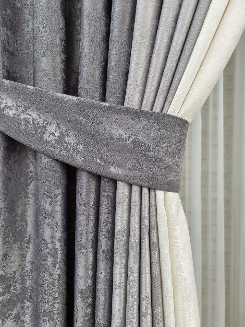 Комплект штор Мрамор 200*260 см графит серый молочный информация:
