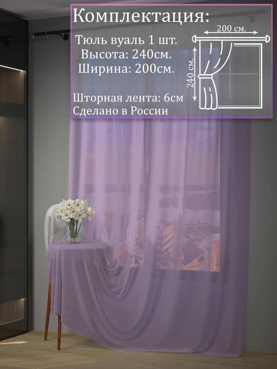 Тюль вуаль 200х240 классический занавес сиреневый информация: