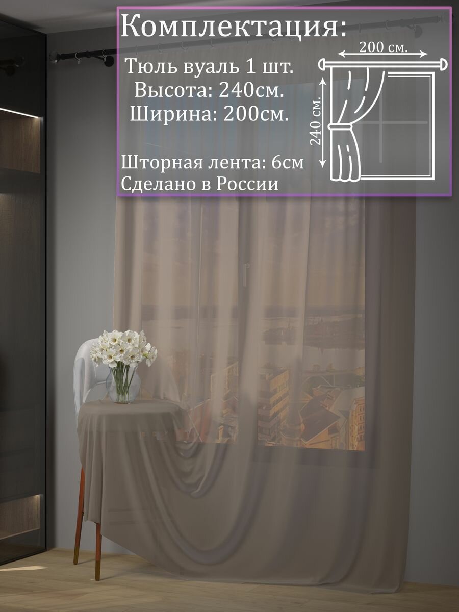 Тюль вуаль 200х240 классический занавес коричневый информация: