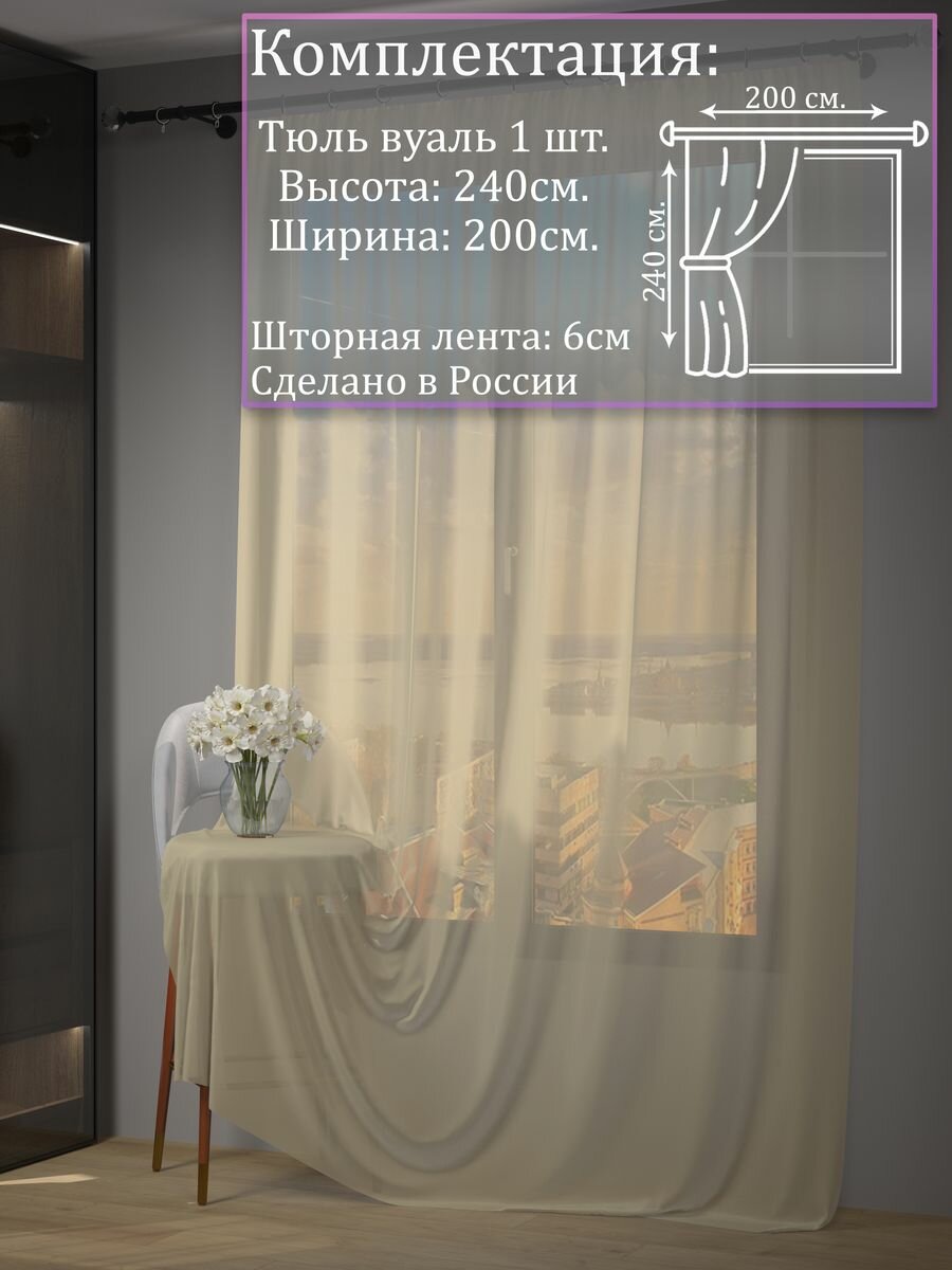 Тюль вуаль 200х240 классический занавес бежевый информация: