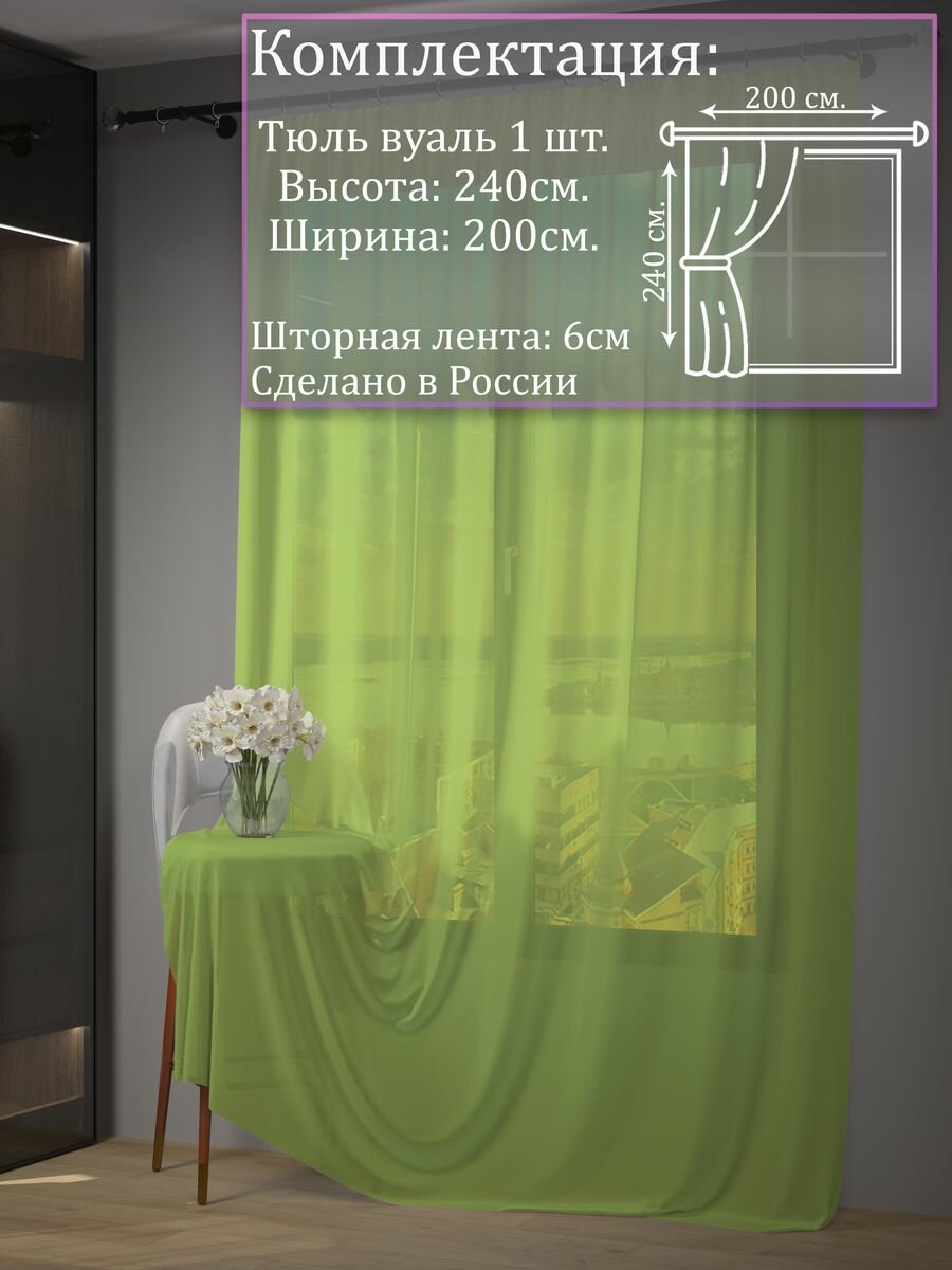 Тюль вуаль 200х240 классический занавес салатовый информация: