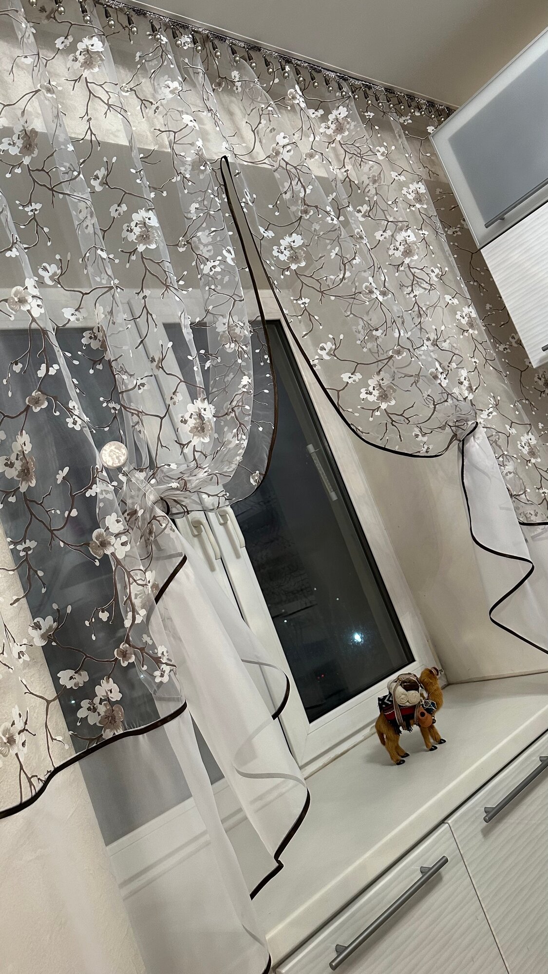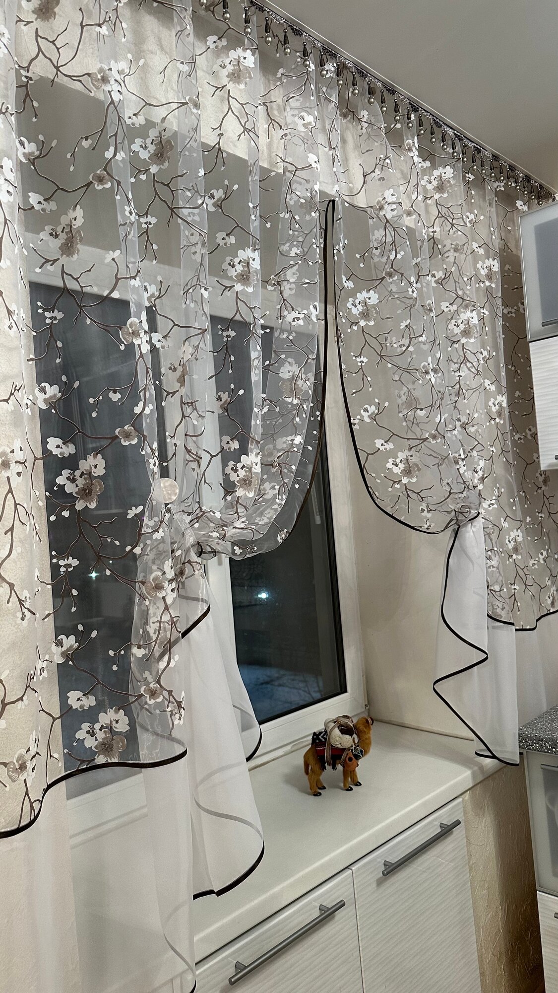Кухонная шторка сакура бежевая, ширина 3м, высота 1,7м информация: